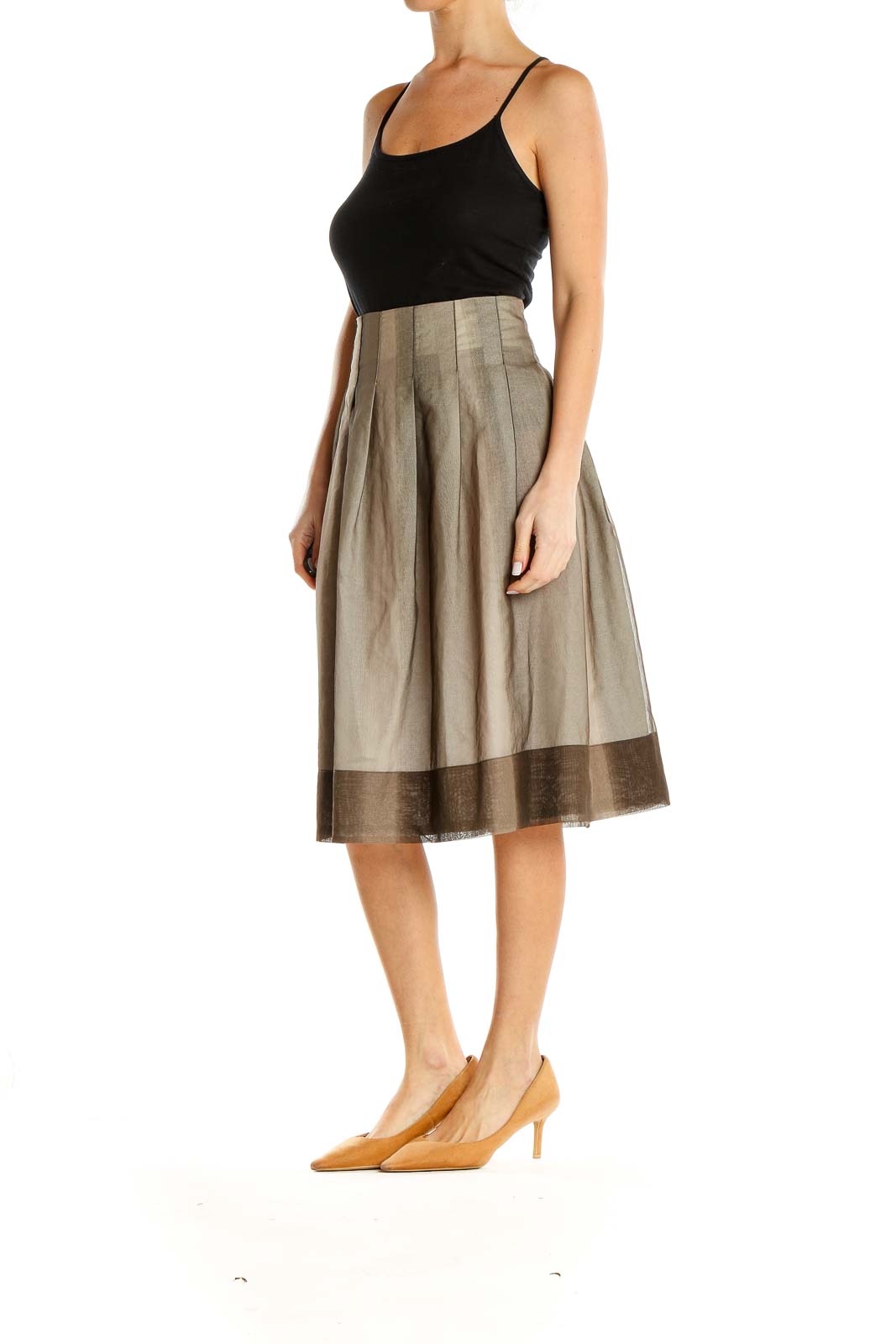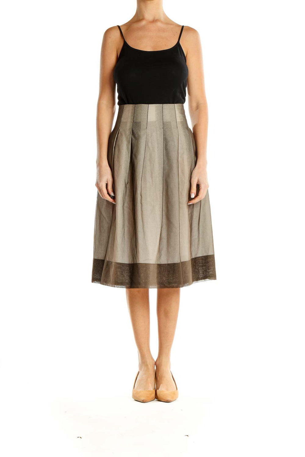 Beige Retro Flared Skirt