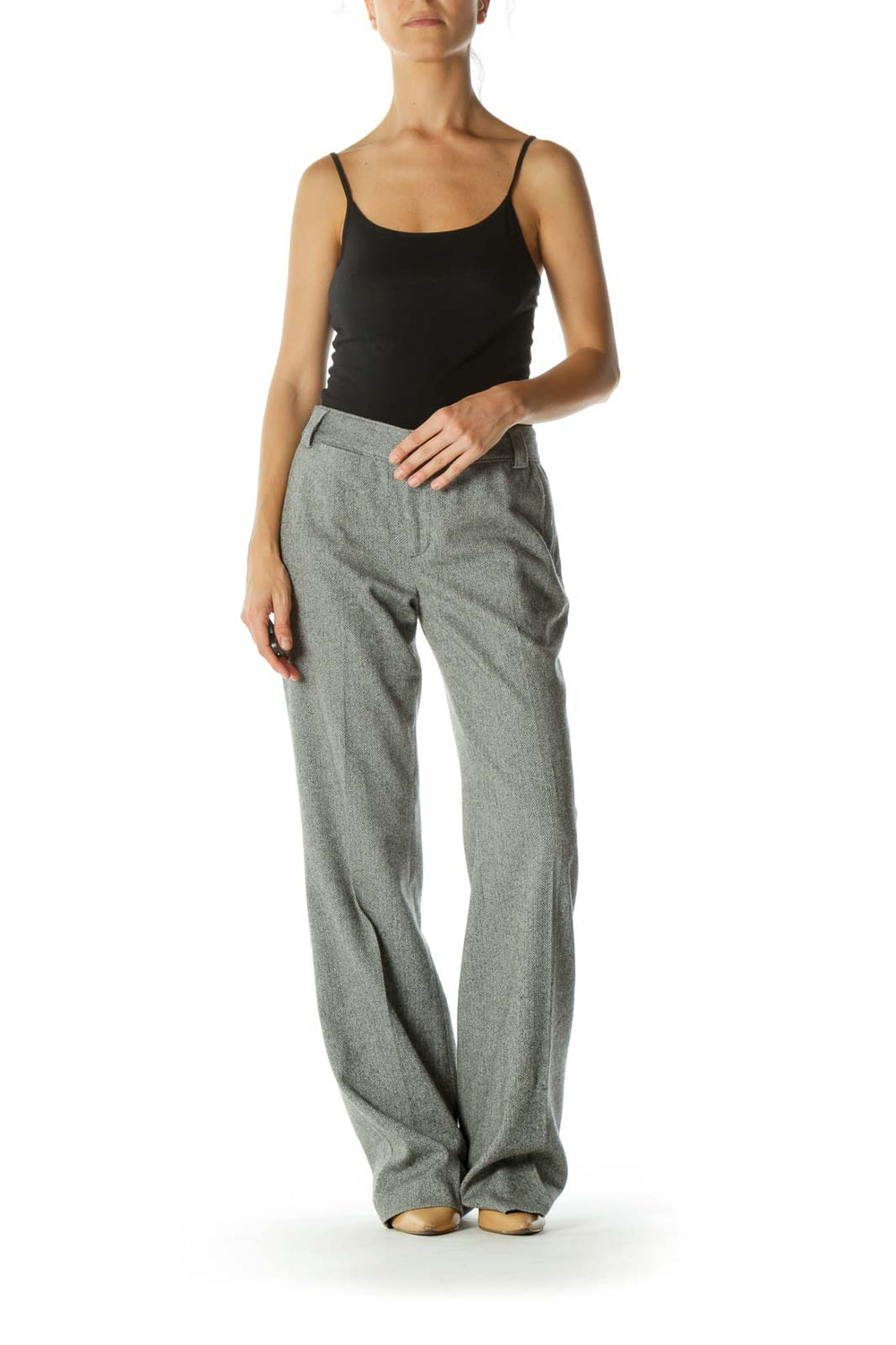 Black White Wool Blend Textured Pocketed with Hip-Outside Pocket Pants