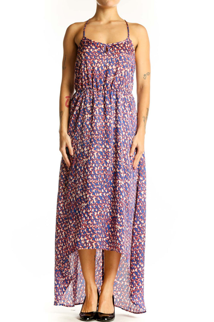 Make a statement with this stunning purple floral print maxi dress from Collective Concepts. The vibrant pattern features a mix of coral, blue, and white floral motifs scattered across a rich purple background, creating a eye-catching and feminine look. The lightweight polyester fabric drapes beautifully, offering both comfort and elegance.