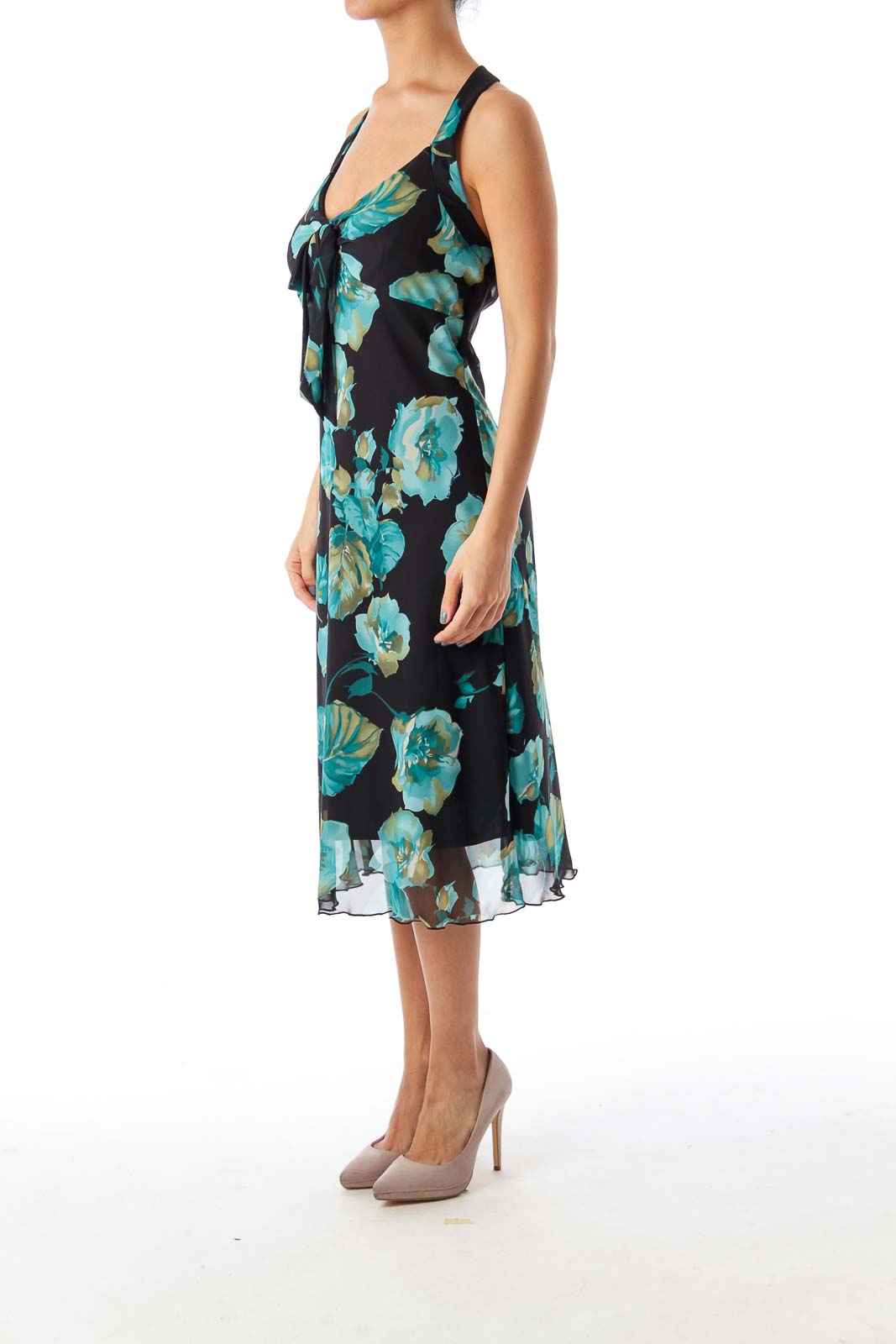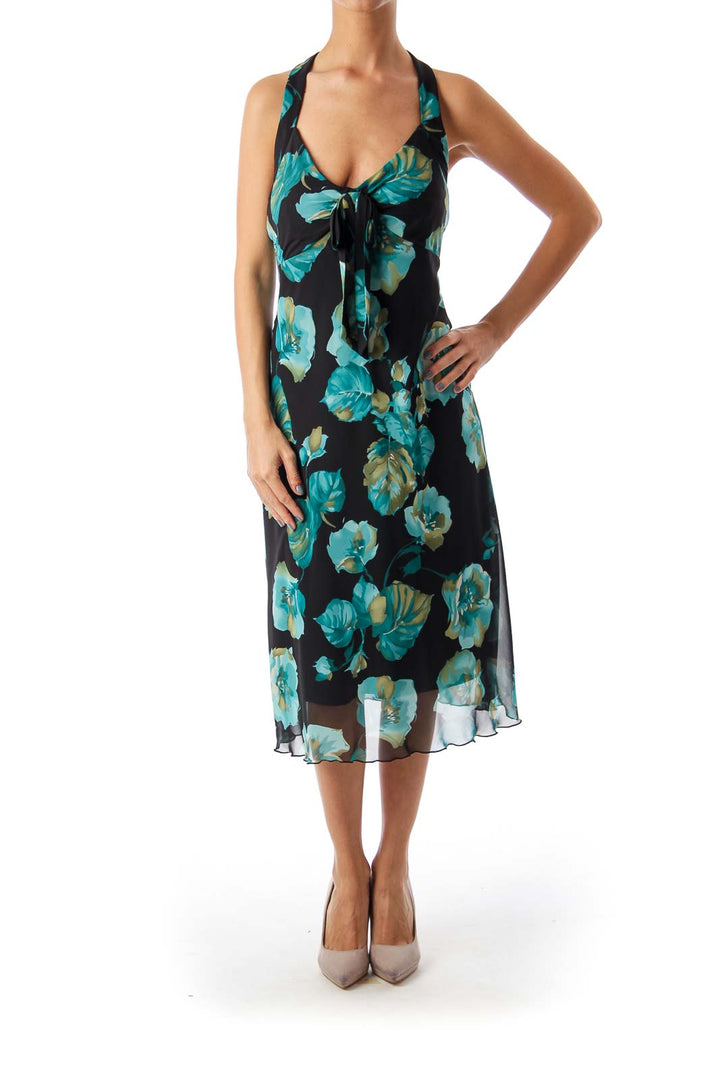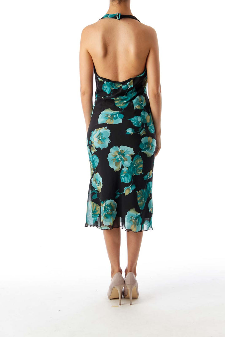 Black & Turquoise Floral Halter Dress