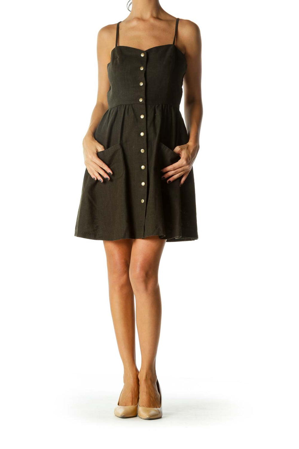 Green Sweetheart Knit Cotton Linen Blend Pocketed Dress