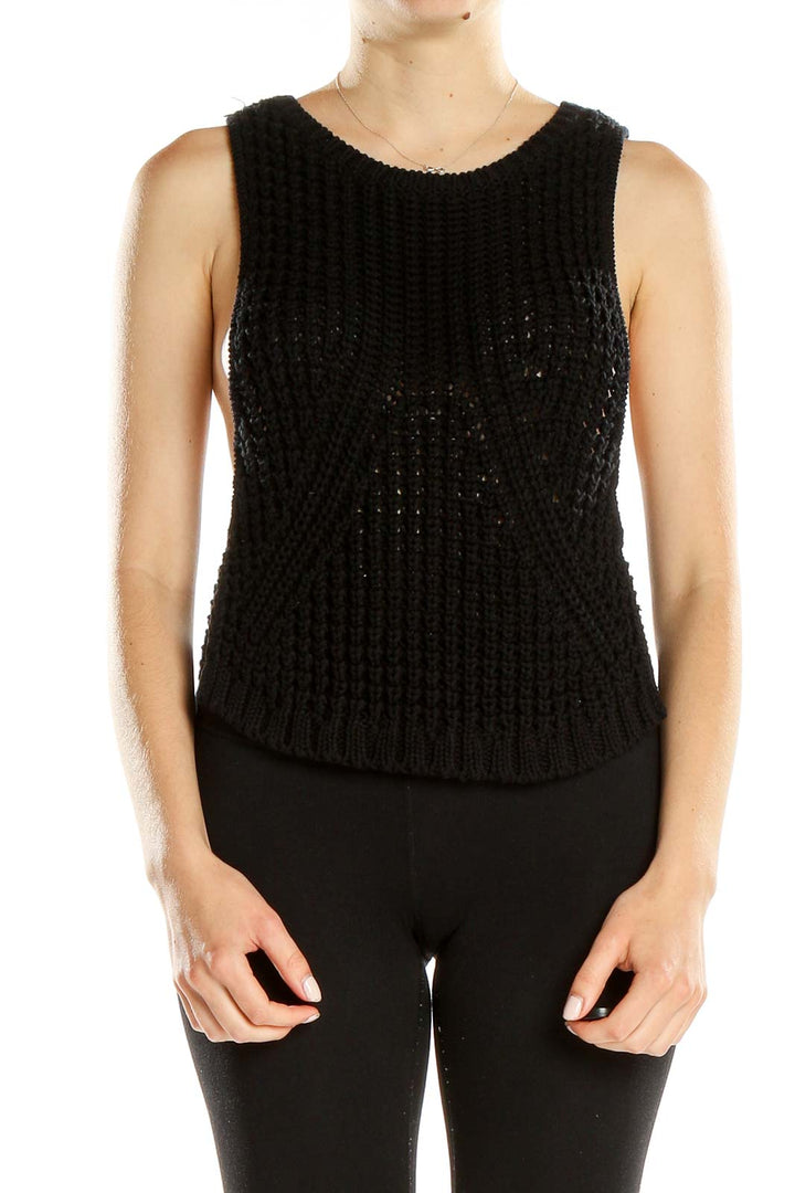 Elevate your wardrobe with this chic black knitted sleeveless top from Cotton by Autumn Cashmere. This versatile piece features a textured knit pattern that adds depth and interest to your look. The sleeveless design and scoop neckline create a flattering silhouette, perfect for layering or wearing on its own. Crafted with attention to detail, this top showcases excellent craftsmanship and quality. The fitted style accentuates your curves while providing comfort for all-day wear. Ideal for both casual outings and dressier occasions, this top pairs beautifully with your favorite bottoms. In excellent condition, this Cotton by Autumn Cashmere piece is a timeless addition to your wardrobe that combines style and comfort effortlessly.