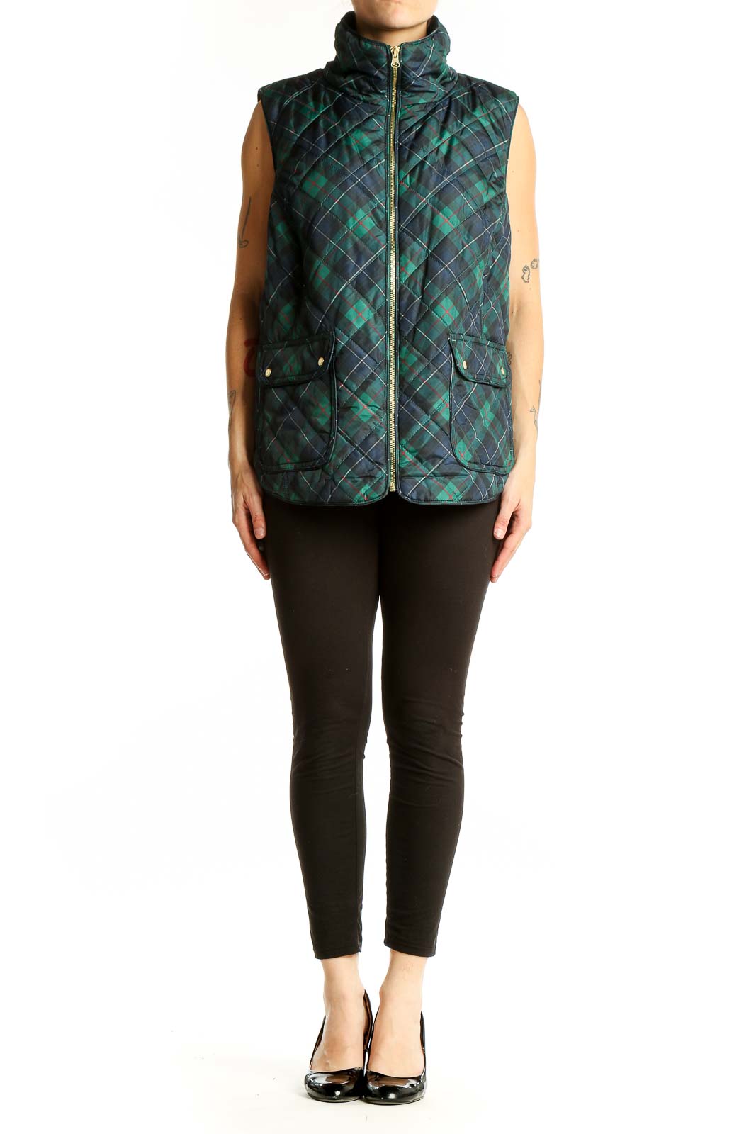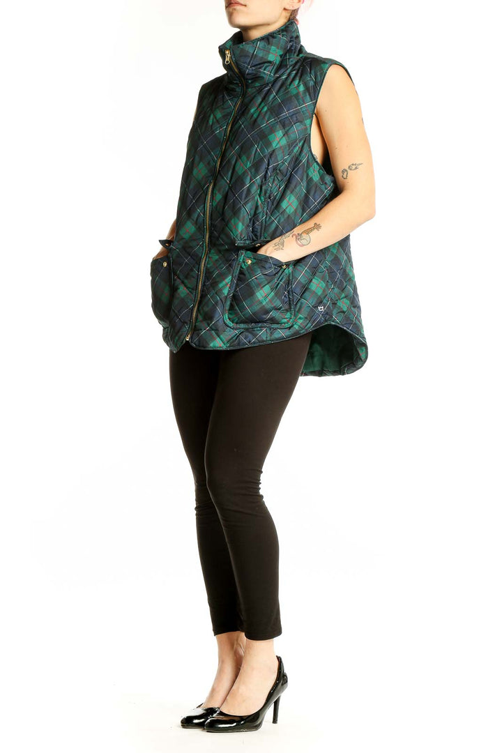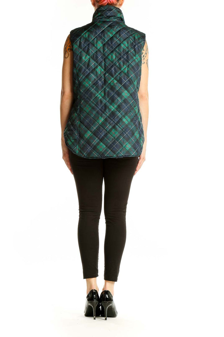 Stay cozy and stylish with this charming Green Plaid Quilted Vest from Crown & Ivy. Perfect for layering, this sleeveless jacket features a classic plaid pattern in shades of green and navy, adding a touch of preppy elegance to your casual wardrobe. The quilted design not only provides warmth but also adds texture and visual interest.