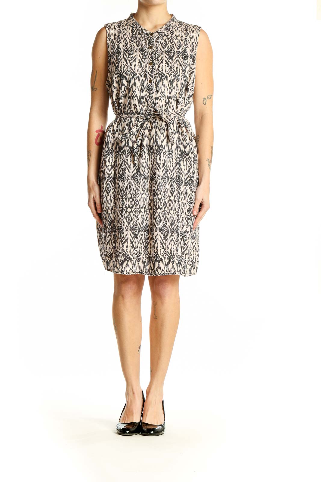 Make a statement with this eye-catching Cynthia Rowley dress in a striking black and white ikat print. Crafted from lightweight linen, this sleeveless dress features a flattering silhouette with a cinched waist and flowy skirt. The bold geometric pattern adds a touch of bohemian flair, perfect for summer soirées or casual outings. With its versatile design, this dress can be easily dressed up or down. The good condition ensures you'll look polished and put-together. Embrace comfort and style with this chic Cynthia Rowley creation.