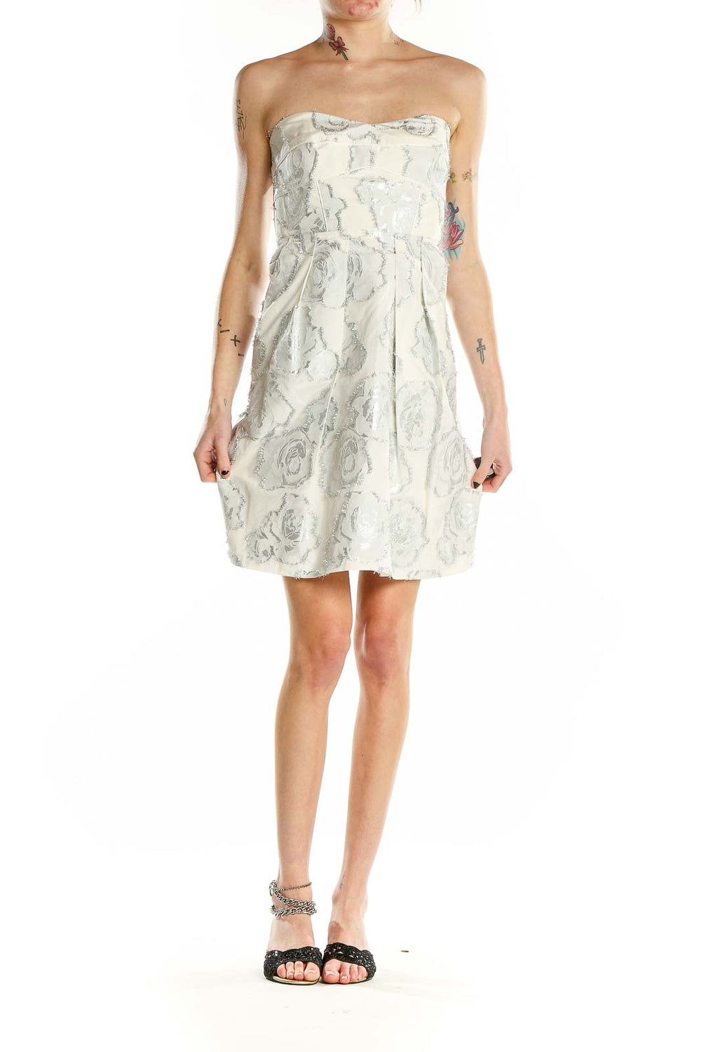 Make a stunning entrance in this elegant white strapless cocktail dress by Cynthia Steffe. The dress features a beautiful floral pattern in soft gray tones, adding a touch of romance and sophistication to your look. Crafted from a luxurious blend of cotton and polyester, this dress offers both comfort and style.