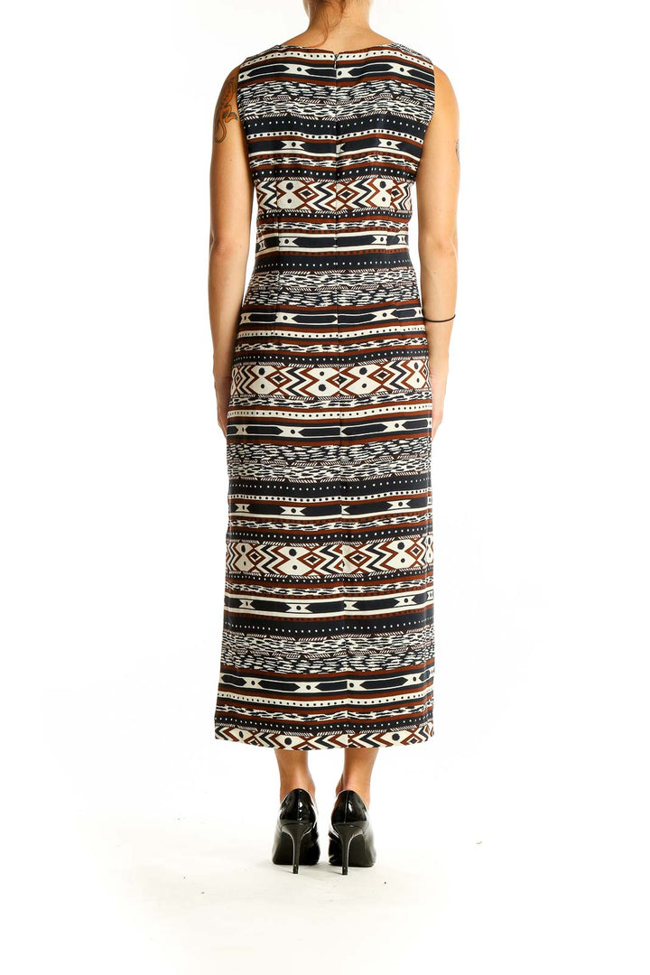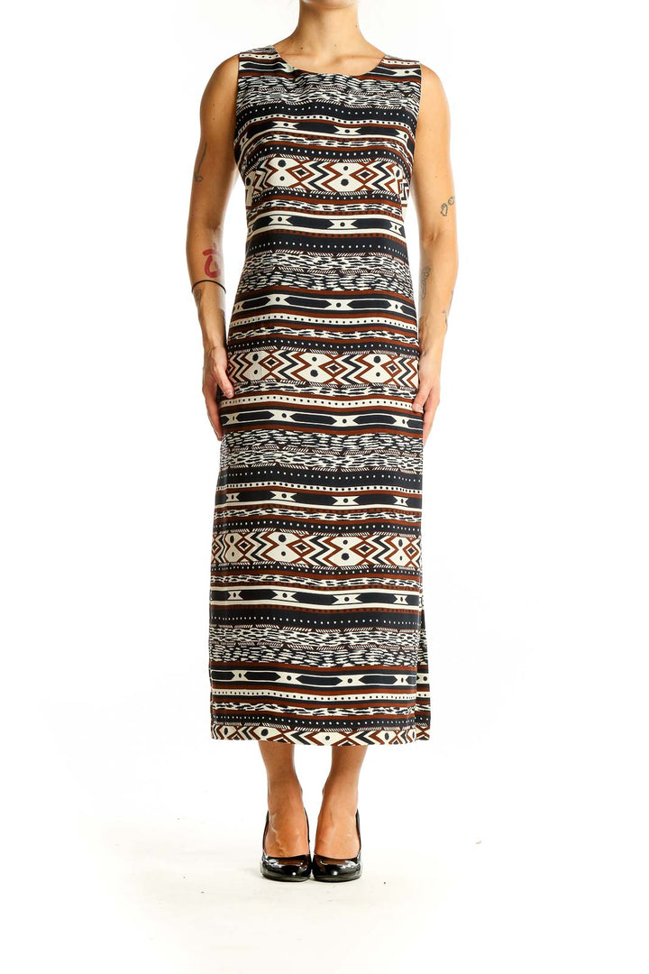 Designed to flatter, this dress showcases a fitted silhouette that accentuates your curves. The round neckline adds a classic touch, and the sleeveless cut is perfect for warm weather or layering. The intricate tribal print adds a bohemian flair, making it suitable for various occasions from casual outings to semi-formal events.