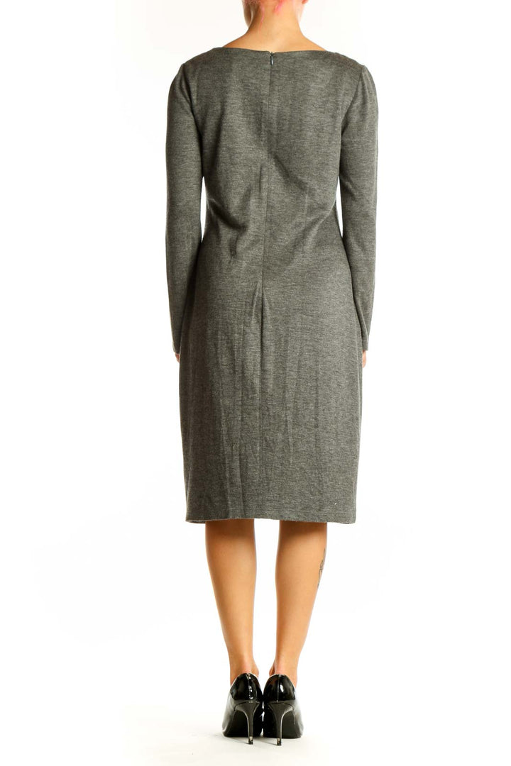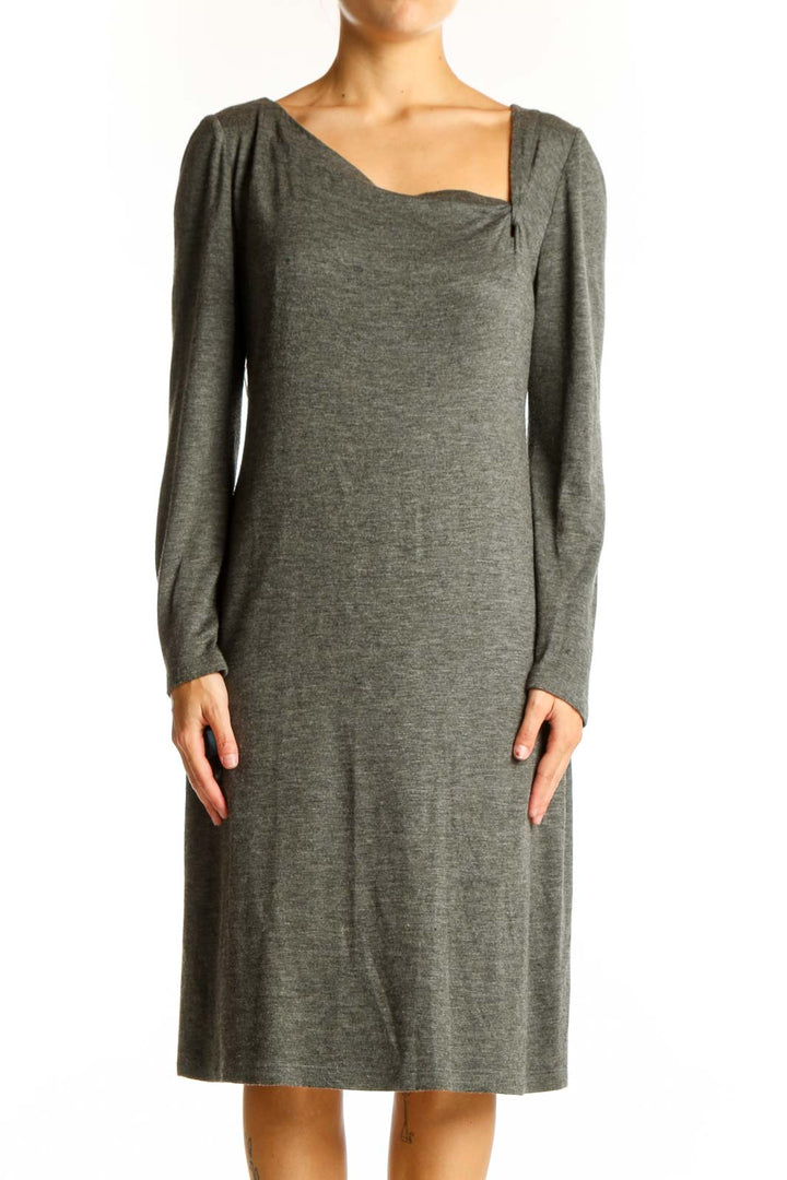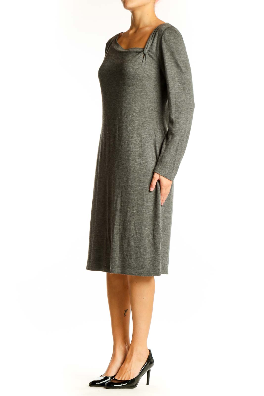 Elevate your wardrobe with this sophisticated gray midi dress by David Meister. Crafted from a luxurious blend of nylon, polyester, and viscose, this dress offers both comfort and style. The unique square neckline adds a touch of elegance, while the long sleeves provide versatility for various occasions. The dress features a flattering fit that skims the body, accentuating your curves without being too tight. Its midi length hits just below the knee, making it perfect for both office wear and evening events. The heather gray color is versatile and easy to accessorize. In good condition, this David Meister dress is a timeless piece that will become a go-to in your closet.