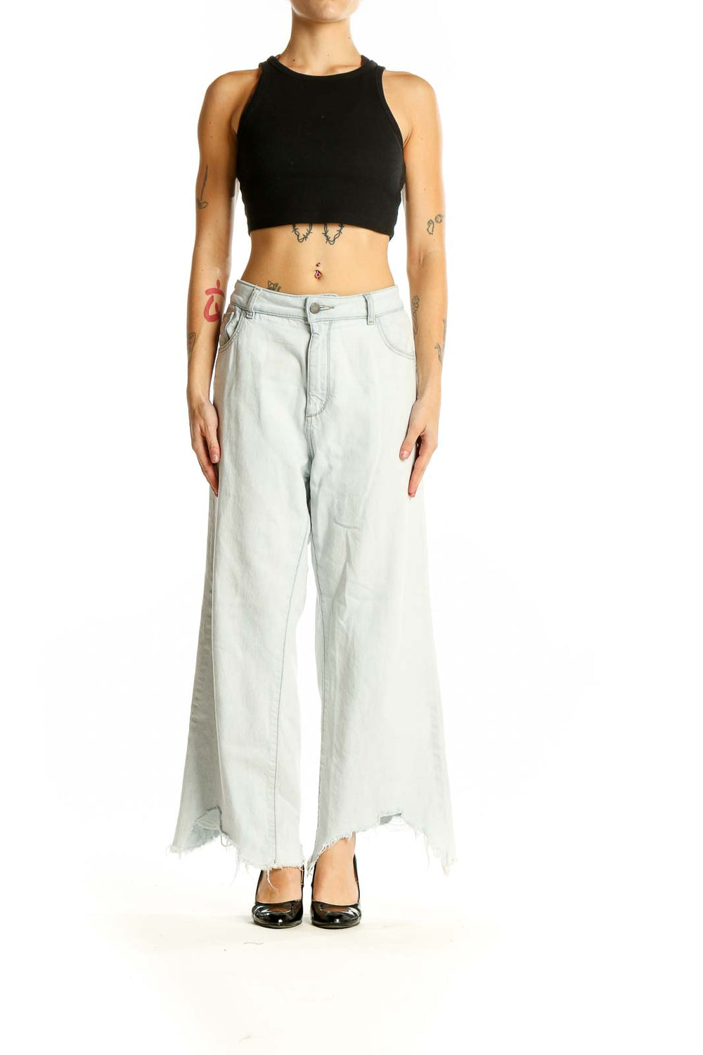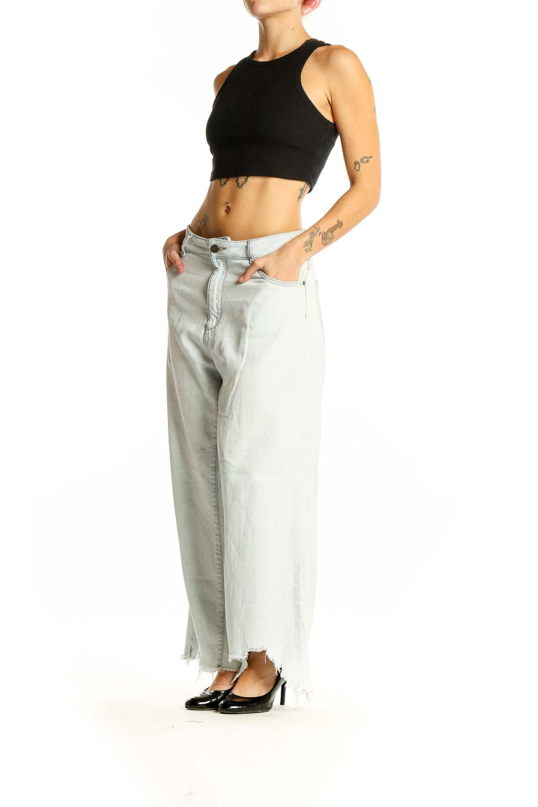 Make a statement with these eye-catching light blue wide-leg jeans from DL1961. Crafted from high-quality cotton, these jeans offer both style and comfort. The wide-leg silhouette provides a trendy and relaxed look, perfect for casual outings or dressed-up occasions. The distressed detailing at the hem adds an edgy touch to the overall design, making these jeans a versatile addition to your wardrobe. With a high-rise waist and a generous 38" length, these jeans elongate your silhouette for a flattering fit. The excellent condition ensures you'll enjoy these jeans for seasons to come. Pair them with your favorite crop top or blouse for a chic, effortless ensemble.