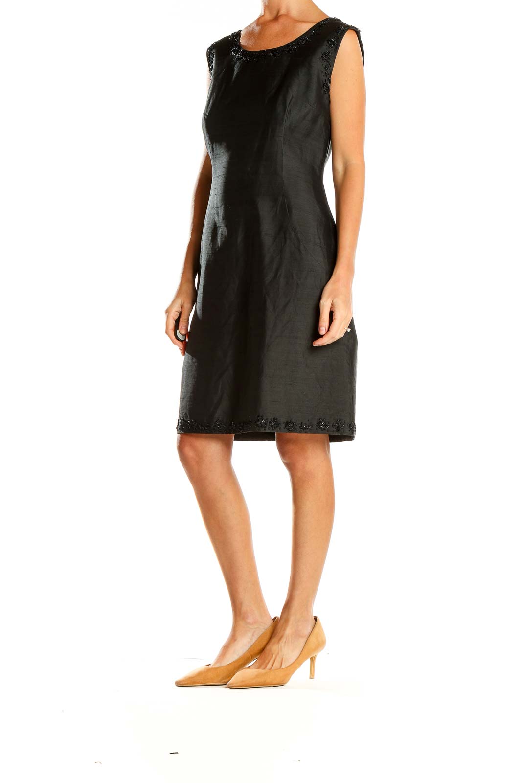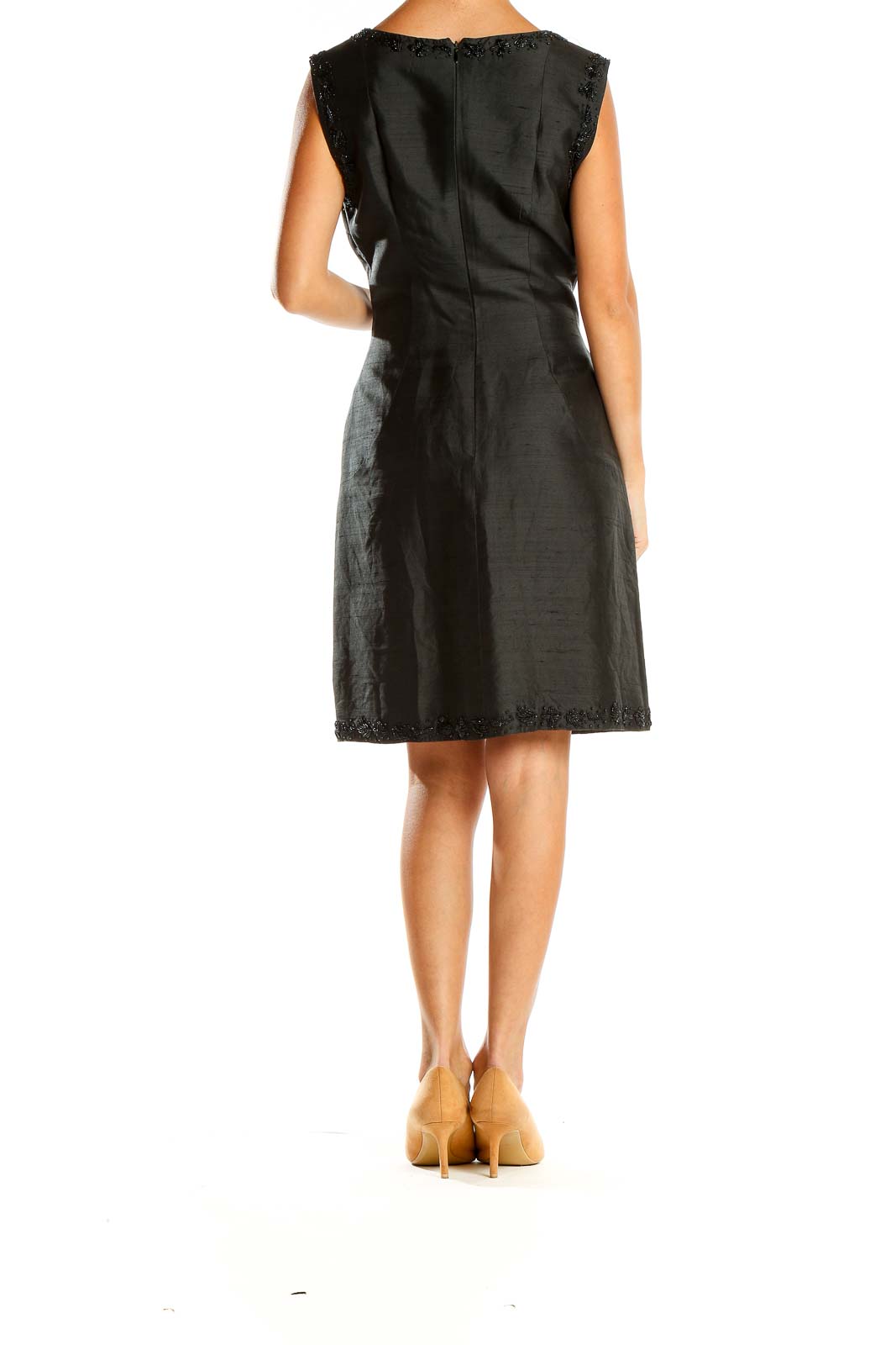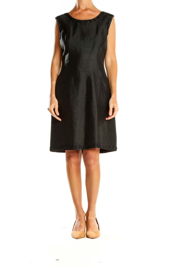 Black Designer Silk Classic Beaded Trim Fit & Flare Dress