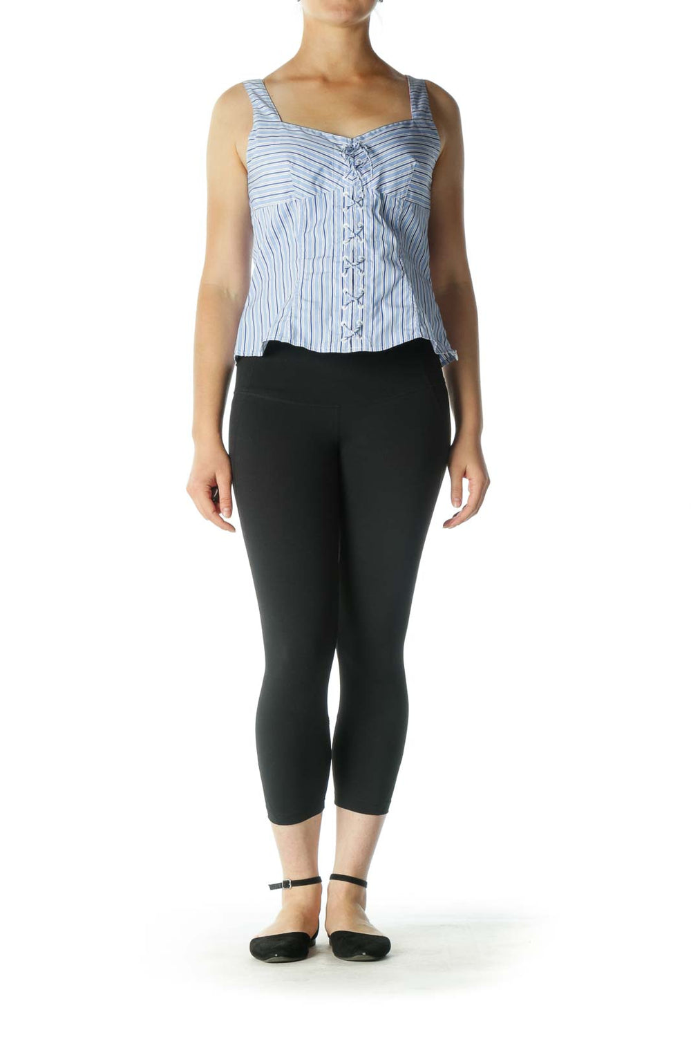 Blue White Striped Crisscross Tank Top