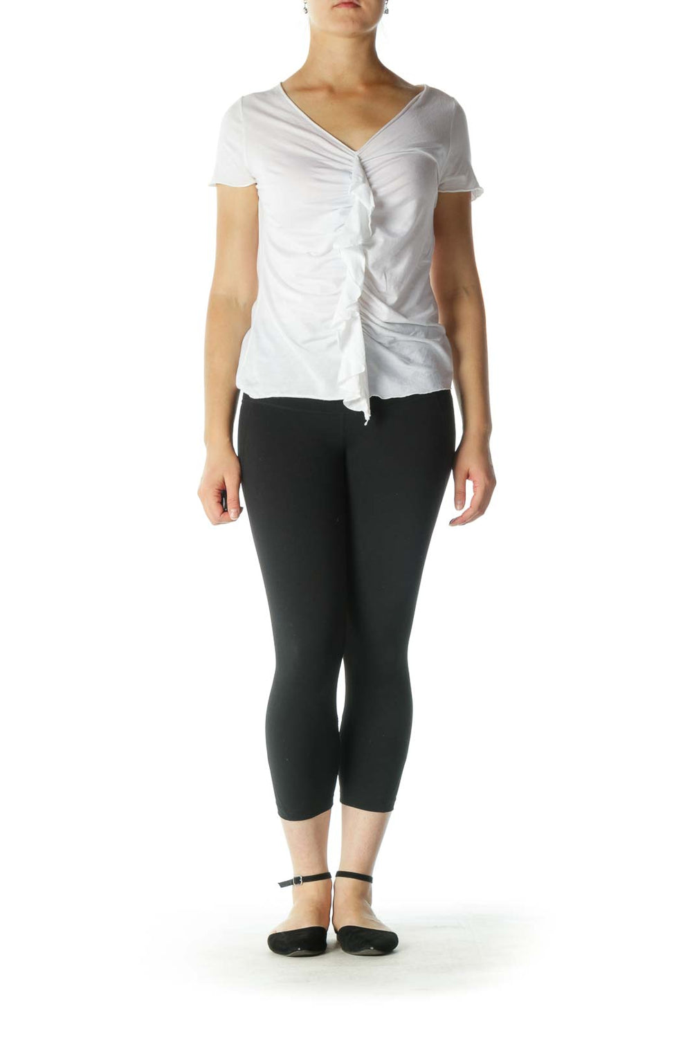 White Ruffle V-Neck T-Shirt
