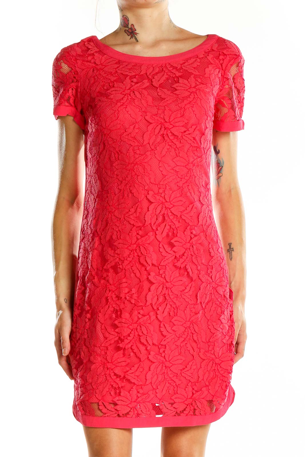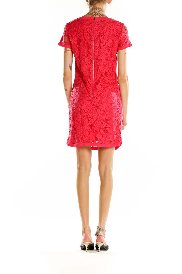Elevate your style with this stunning red floral lace dress from Donna Morgan. This exquisite piece features an all-over lace design, creating a romantic and feminine look perfect for special occasions. The short sleeves and scoop neckline add a touch of elegance, while the fitted silhouette accentuates your curves beautifully. Crafted from a luxurious blend of cotton, nylon, polyester, and viscose, this dress offers both comfort and sophistication. The excellent condition ensures you'll look your best, whether at a cocktail party or a summer wedding. With its versatile design and vibrant red hue, this dress is sure to become a favorite in your wardrobe.