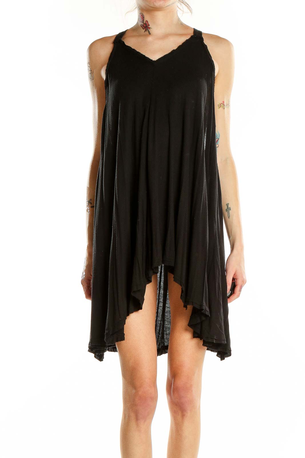 The sleeveless design showcases a striking racerback, perfect for showing off sun-kissed shoulders. With its relaxed fit and generous drape, this dress effortlessly transitions from day to night. The versatile black color makes it an ideal canvas for accessorizing, whether you're headed to a casual brunch or a evening out.