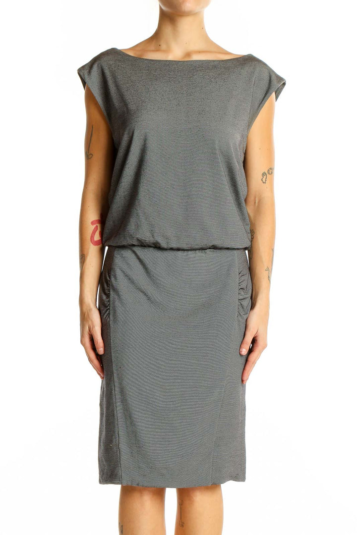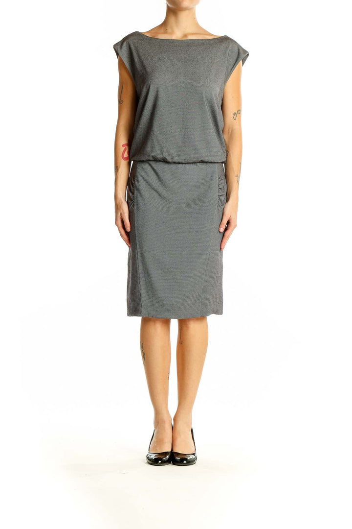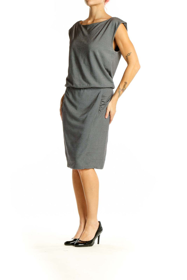 Elevate your wardrobe with this versatile gray sleeveless dress from Athleta. Perfect for both casual outings and active pursuits, this dress features a flattering blouson silhouette that drapes beautifully over your curves. The boat neckline adds a touch of elegance, while the knee-length cut offers modest coverage.