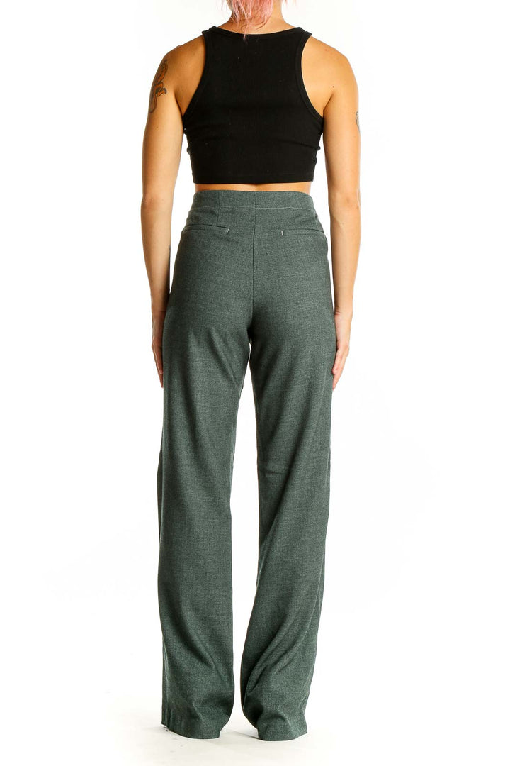 Step into sophistication with these elegant green wide-leg dress pants from Elevenses. Crafted from a luxurious blend of polyester, rayon, and spandex, these pants offer both comfort and style. The rich forest green hue adds a touch of refinement to your wardrobe, perfect for both office wear and evening occasions.