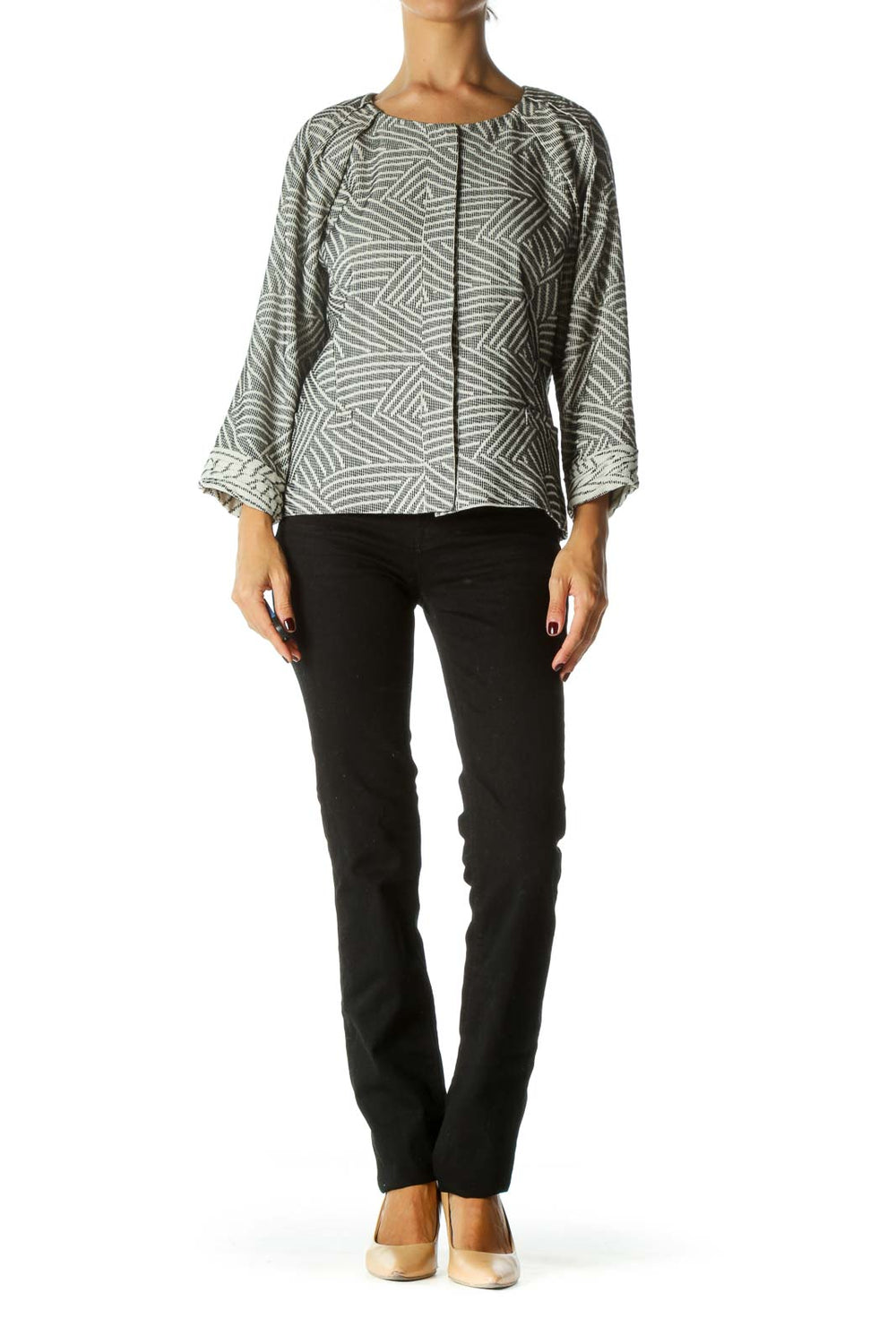 Black Cream Knit Pattern Pleating Detail Snap Buttons Faux-Buttons Blazer