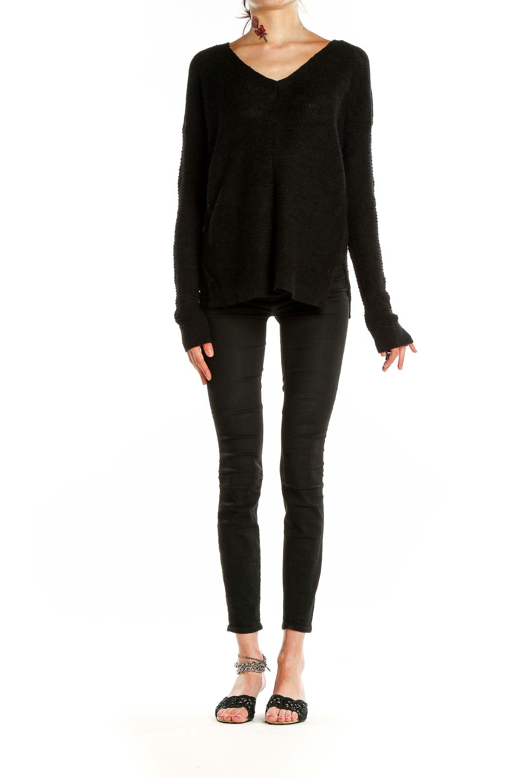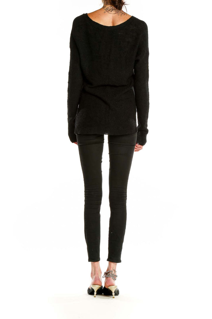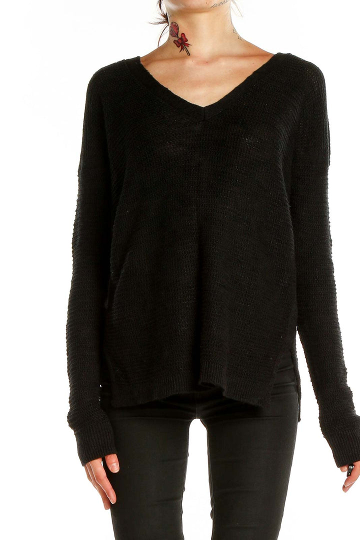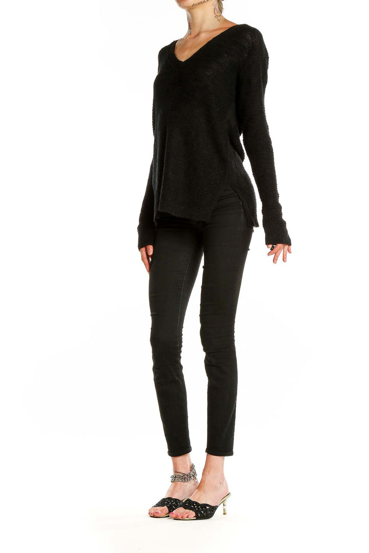 Elevate your casual wardrobe with this sophisticated black V-neck knit sweater from Banana Republic. Crafted with a soft, textured knit fabric, this versatile piece offers both comfort and style. The relaxed fit and dropped shoulders create a laid-back silhouette, perfect for effortless everyday wear. The V-neckline adds a touch of elegance, while the ribbed cuffs and hem provide a polished finish. With its generous length and slightly oversized design, this sweater pairs beautifully with skinny jeans or leggings for a chic, balanced look. In good condition, this Banana Republic sweater is a timeless addition to your closet that will keep you cozy and stylish season after season.