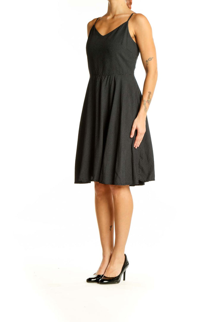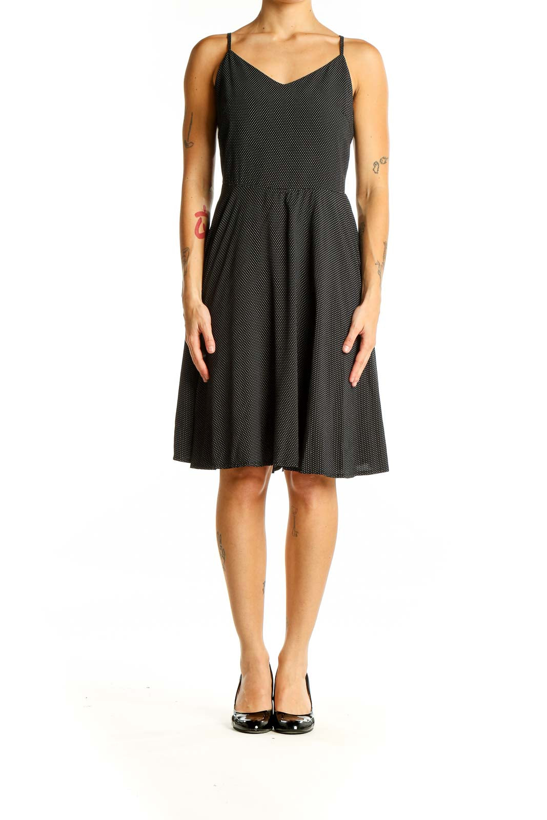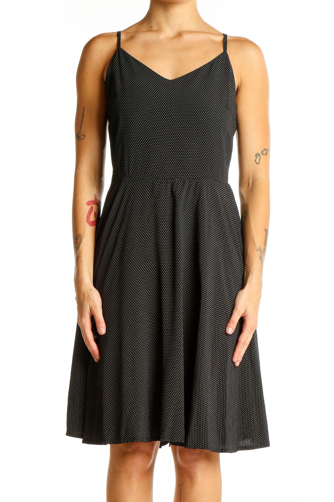 Front view of Gap black polka dot sundress with V-neckline and thin straps