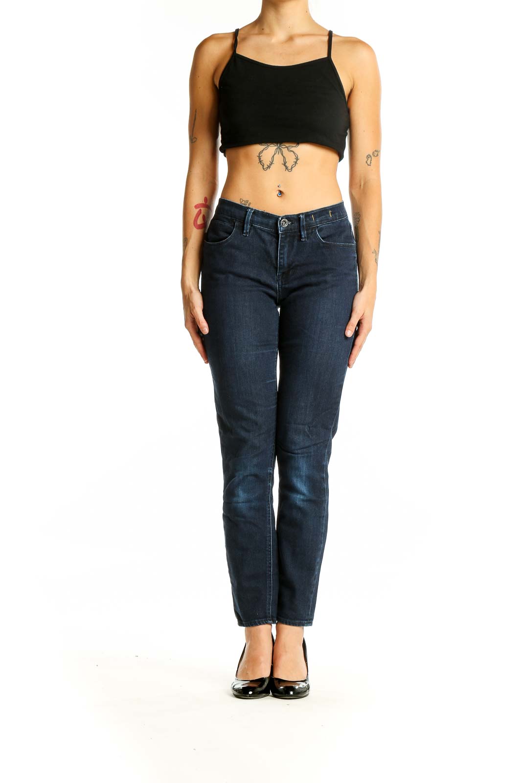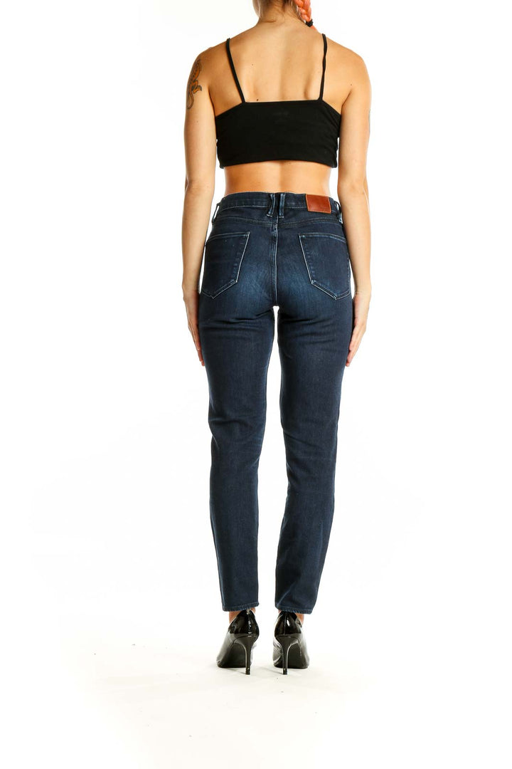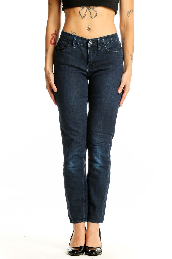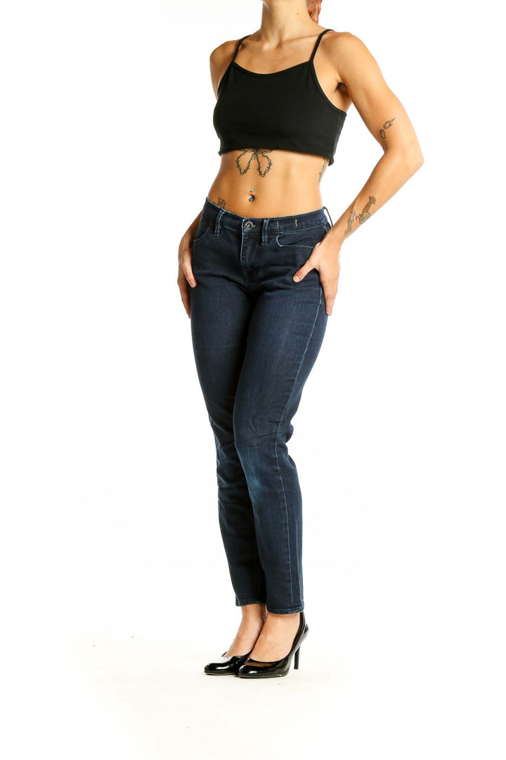 Dark Blue Straight Leg Denim Jeans
