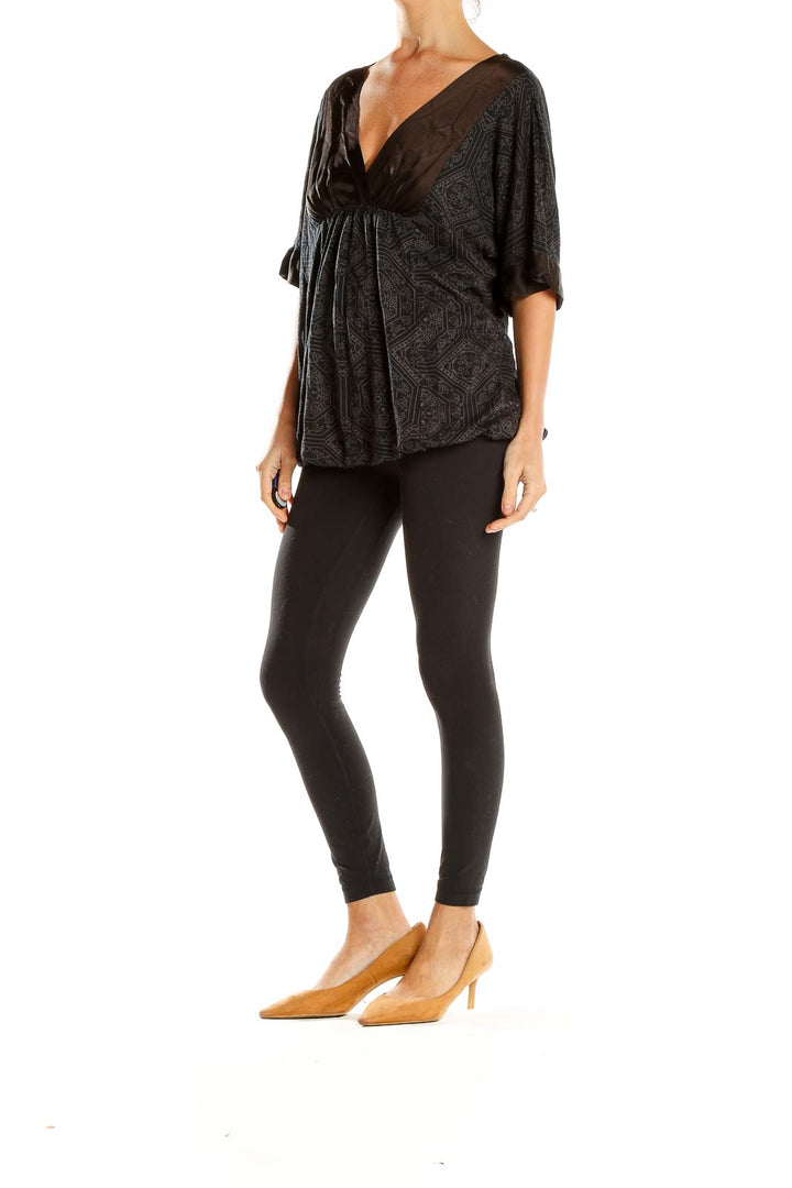 Elevate your casual wardrobe with this chic Black Geometric Print Empire Waist Top by Ella Moss. This versatile piece features a striking black and gray geometric pattern that adds a touch of sophistication to any outfit. The deep V-neckline creates a flattering silhouette, while the empire waist design offers a comfortable and forgiving fit.