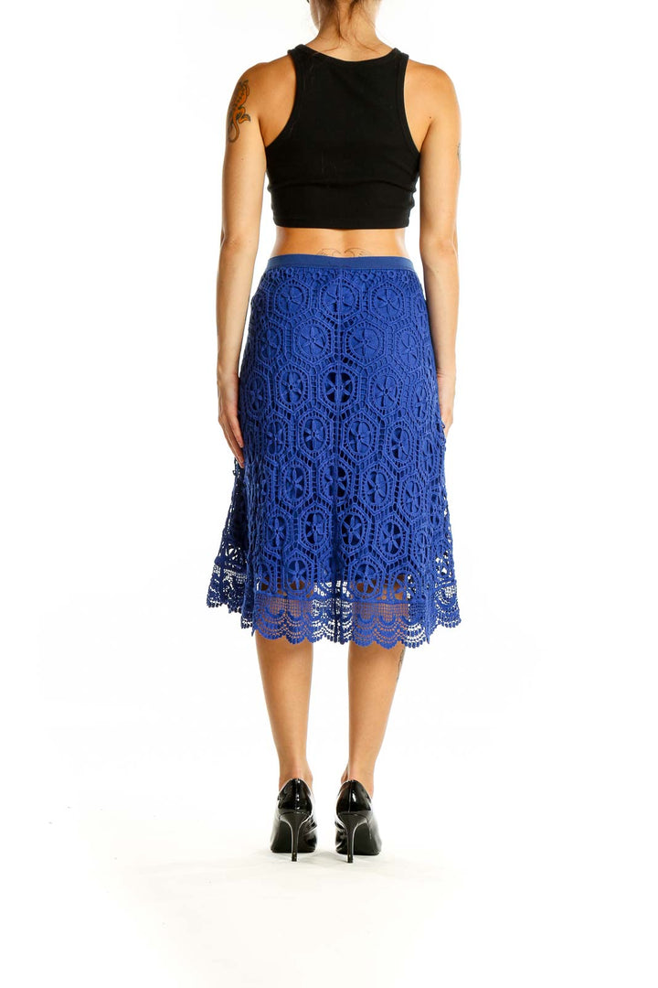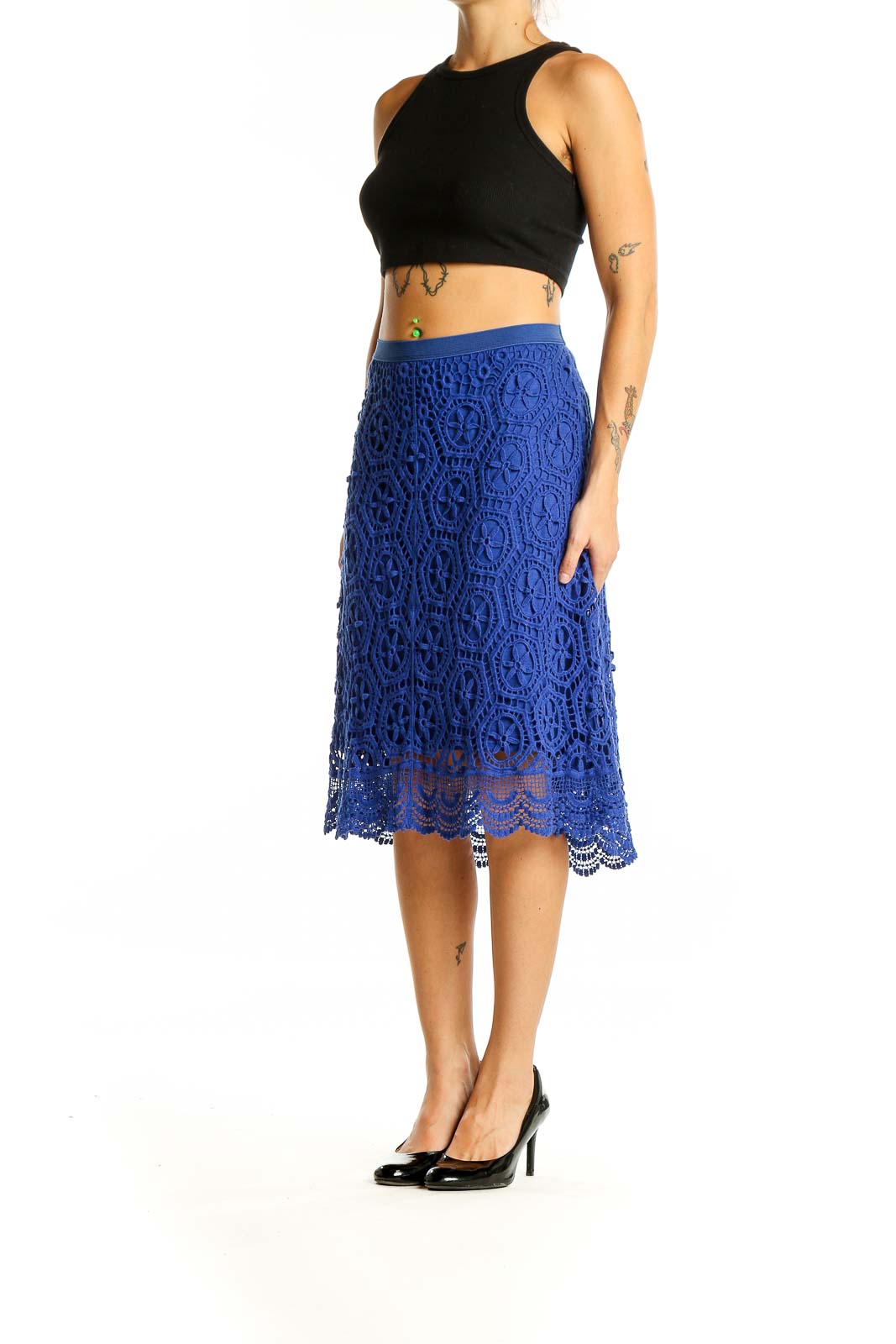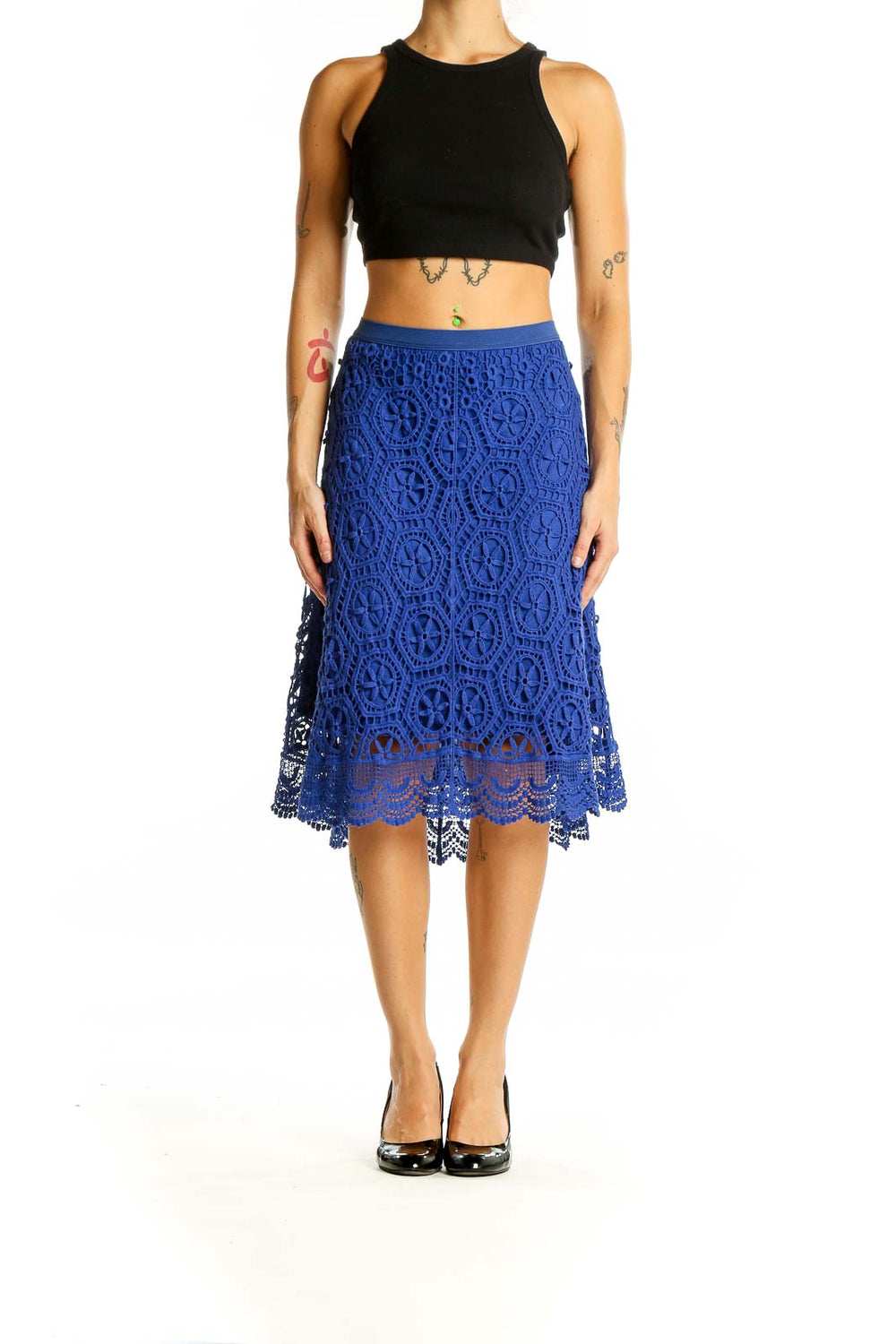 Pair this stunning skirt with a simple top to let the intricate lace take center stage, or dress it up with heels and statement jewelry for a night out. The rich royal blue color adds a pop of vibrancy to your wardrobe, making it a standout piece for any season.