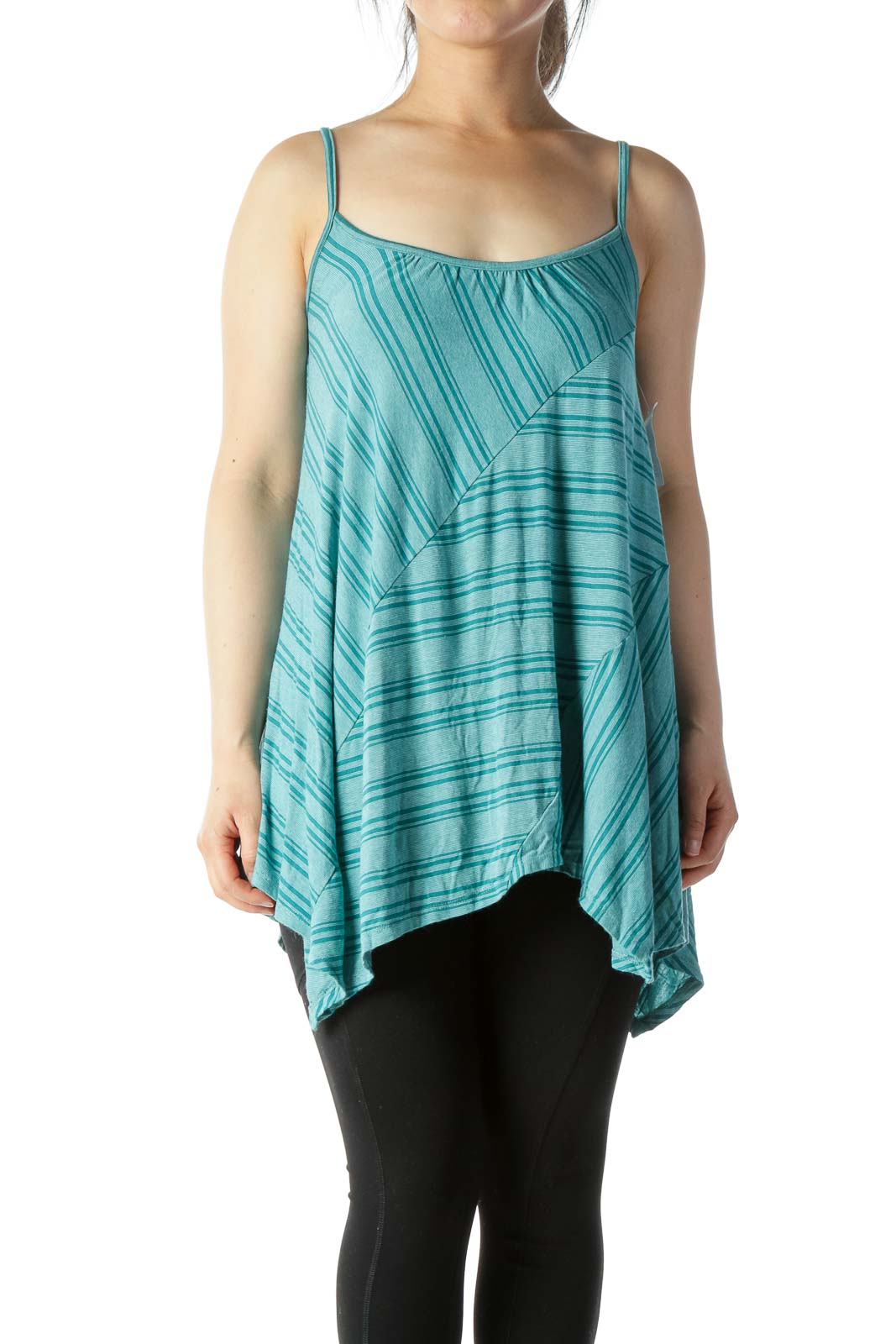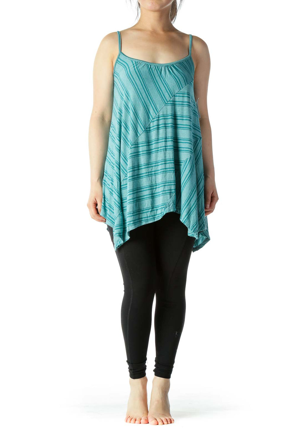 Teal Stripe Print Tunic Tank Top