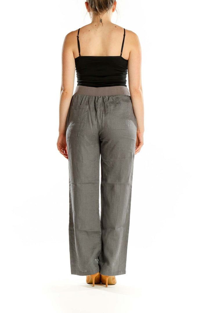 Back view of Ellen Tracy gray linen wide-leg pants on model