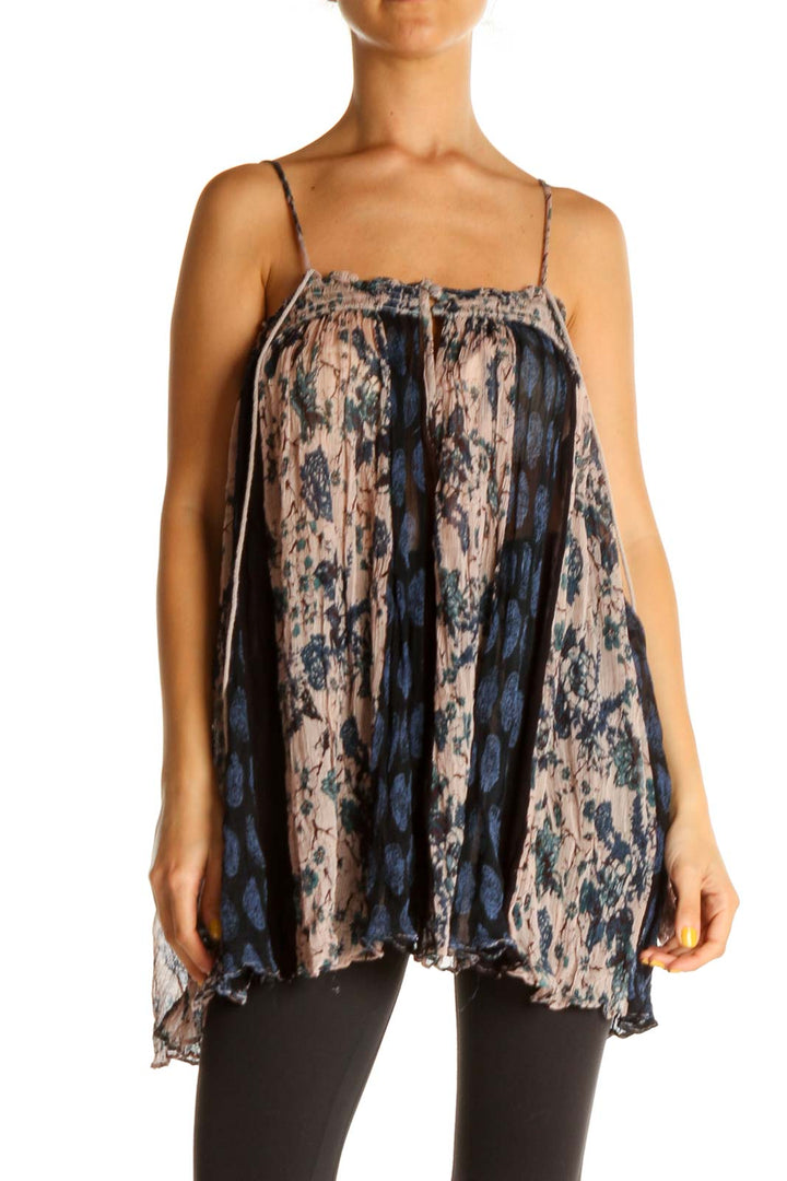 Elevate your summer wardrobe with this ethereal Free People cami top. Featuring a stunning blue and beige floral print, this piece exudes bohemian charm and effortless style. The lightweight, flowy fabric drapes beautifully, creating a flattering silhouette that's perfect for warm days and balmy nights.