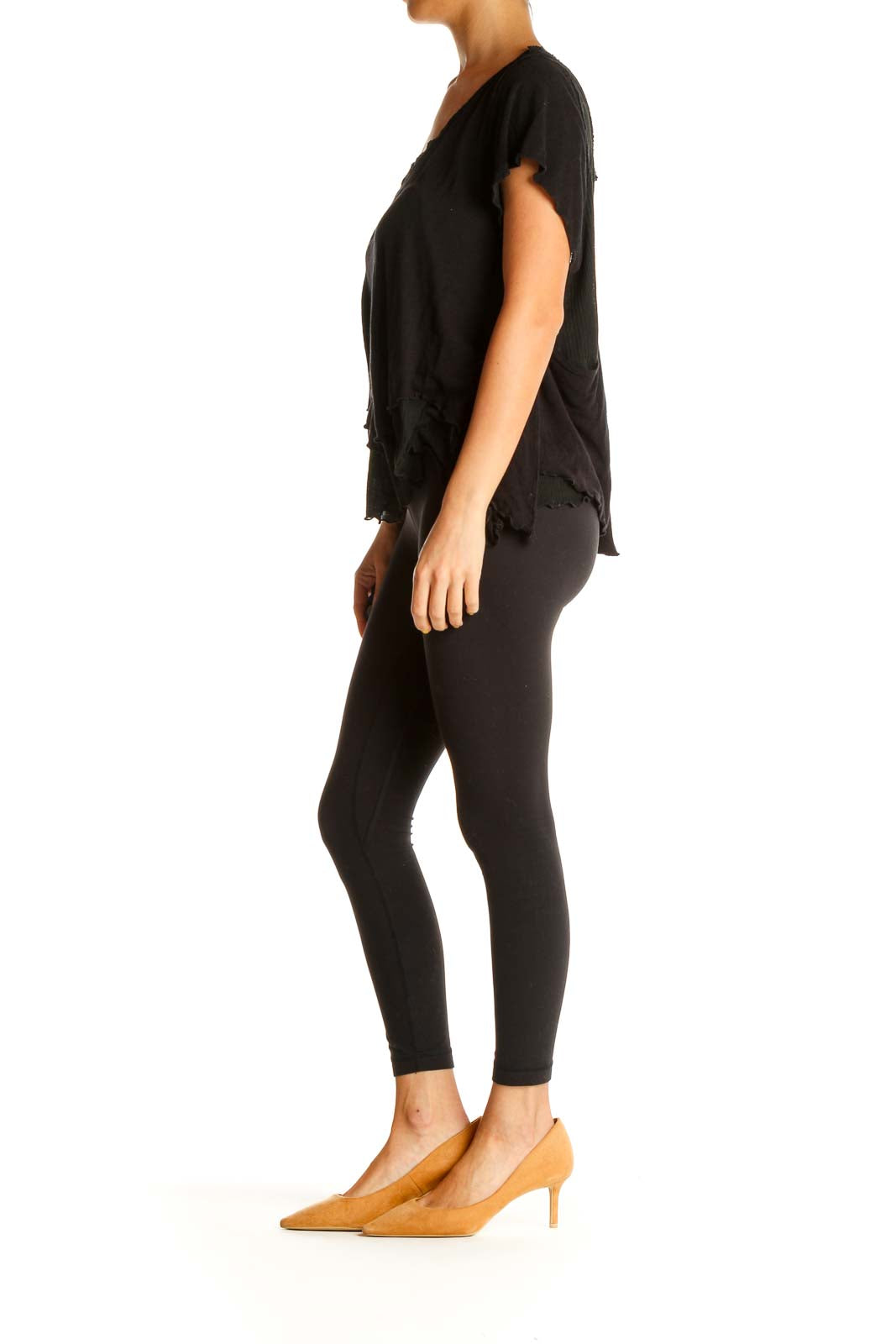 Elevate your casual wardrobe with this chic black layered top from Free People. This versatile piece features a flattering V-neckline and short flutter sleeves, perfect for a range of occasions. The layered design adds a touch of sophistication, with a flowing silhouette that drapes beautifully over the body. Made from a soft, lightweight fabric, this top offers both comfort and style. The relaxed fit and longer length at the back provide excellent coverage, making it ideal for pairing with your favorite jeans or leggings. In good condition, this Free People top is a must-have addition to your everyday fashion lineup.