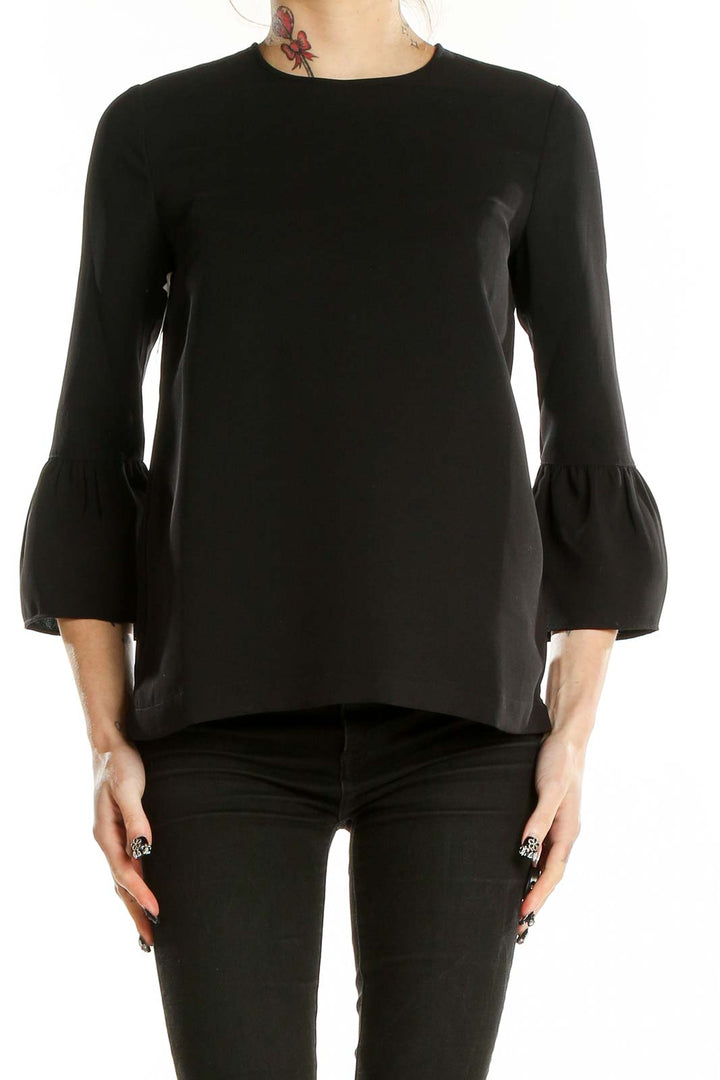 Elevate your wardrobe with this chic black blouse from Madewell. Crafted from smooth polyester, this top features elegant bell sleeves that add a touch of drama to its simple silhouette. The round neckline and relaxed fit through the body create a flattering and versatile piece suitable for both office and casual wear. With its excellent condition and quality construction, this blouse is a testament to Madewell's commitment to stylish, long-lasting clothing. The measurements ensure a comfortable fit for a size XS, with a 34" bust, 36" waist, and 24" length. Whether paired with tailored trousers for a professional look or your favorite jeans for a more laid-back ensemble, this Madewell blouse is sure to become a go-to in your clothing rotation.
