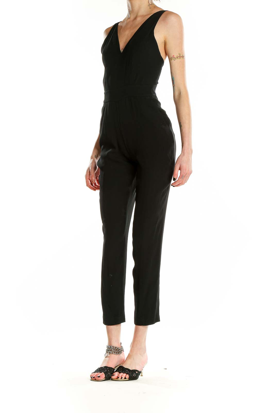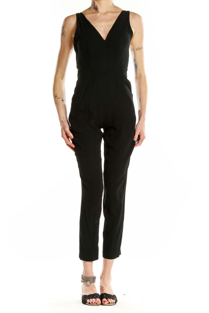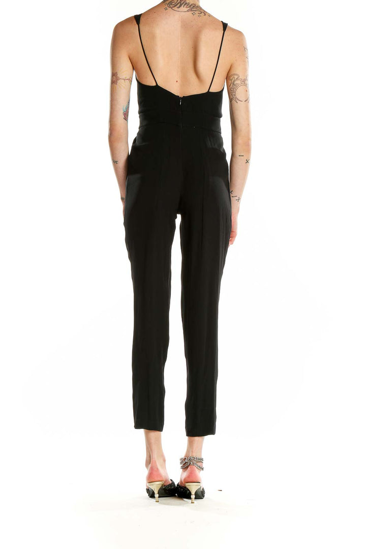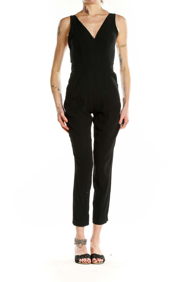 Make a statement with this sleek black jumpsuit from Theory. Crafted from a luxurious blend of acetate, polyester, and viscose, this all-in-one piece offers both comfort and style. The V-neckline and sleeveless design create a flattering silhouette, perfect for various occasions. With its slim fit and cropped length, this jumpsuit accentuates your figure while providing a modern, sophisticated look. The excellent condition ensures you'll feel confident and polished. Versatile and chic, this Theory jumpsuit is an essential addition to any fashion-forward wardrobe.