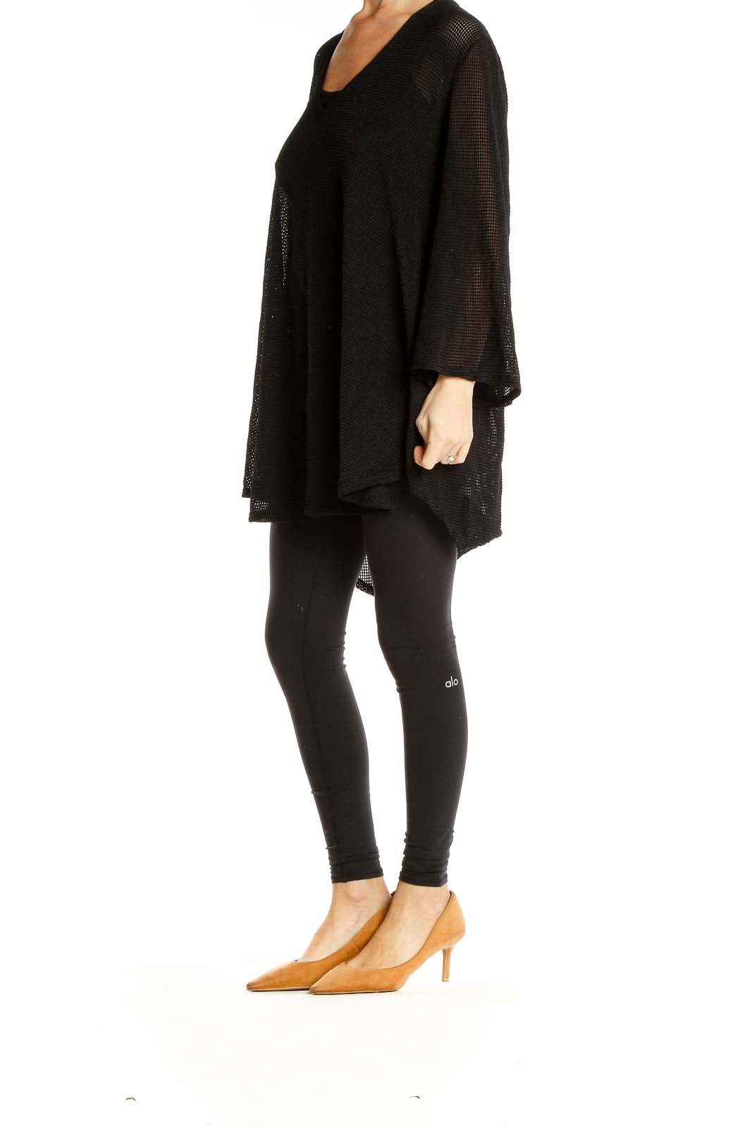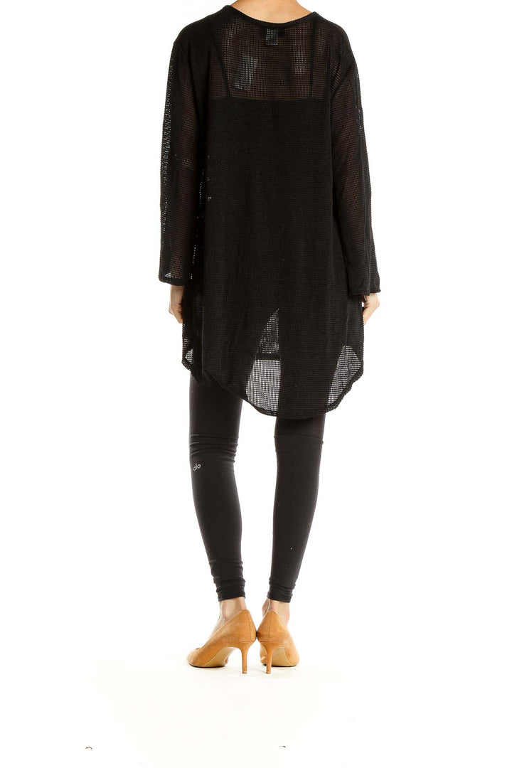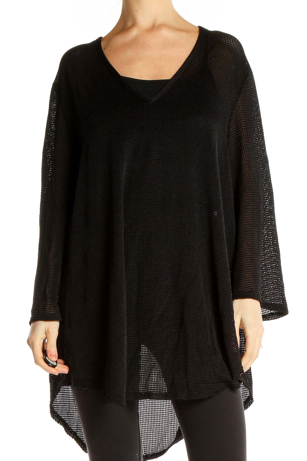 Elevate your casual wardrobe with this chic black mesh tunic top by Jordan Taylor. This oversized piece features a flattering V-neckline and long sleeves, perfect for layering or wearing on its own. The lightweight, semi-sheer mesh fabric offers breathability and a touch of elegance, making it suitable for various occasions. The relaxed fit and high-low hemline create a flattering silhouette that drapes beautifully over the body. In excellent condition, this versatile top can be dressed up or down, making it a must-have addition to your closet. The generous XL size ensures comfort and ease of movement, with measurements of 42" bust, 44" waist, and 32" length. Whether paired with leggings for a casual look or dressed up with tailored pants for a night out, this Jordan Taylor tunic is sure to become a go-to piece in your wardrobe.