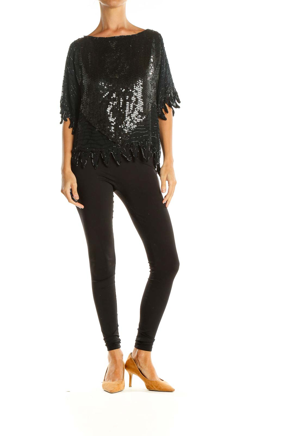 Black Sequin Vintage Party Top