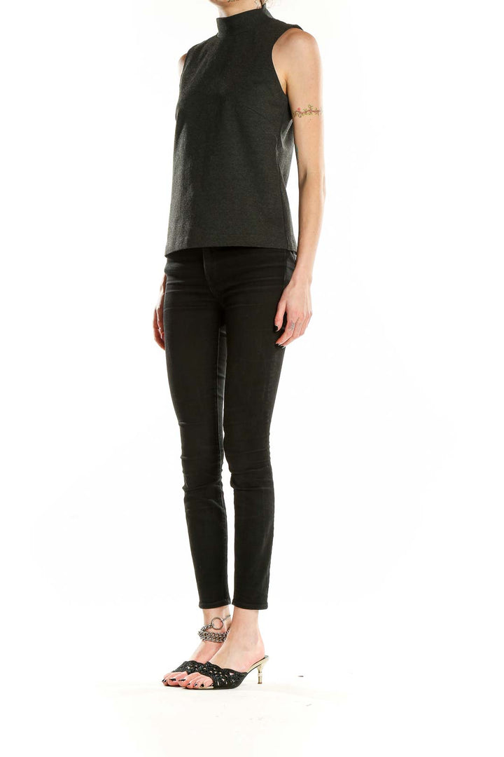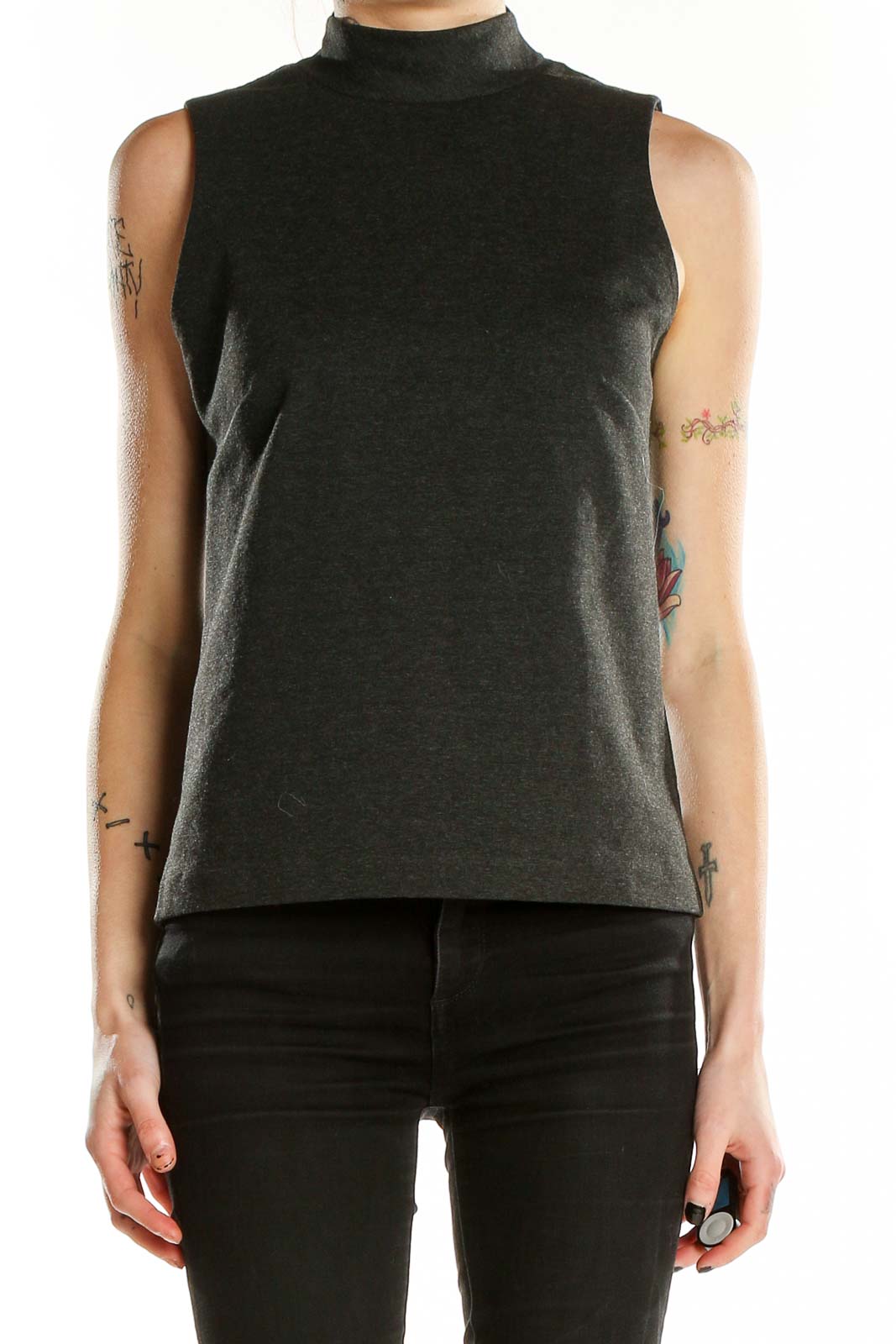 Elevate your wardrobe with this sophisticated charcoal mock neck sleeveless top from J.Crew. Crafted from a luxurious blend of elastane and polyester, this versatile piece offers both comfort and style. The sleek, form-fitting silhouette accentuates your curves while the mock neck adds a touch of elegance. Perfect for layering or wearing on its own, this top transitions seamlessly from day to night. The excellent condition ensures you'll look polished and put-together for any occasion. With its timeless design and quality construction, this J.Crew top is sure to become a staple in your closet.