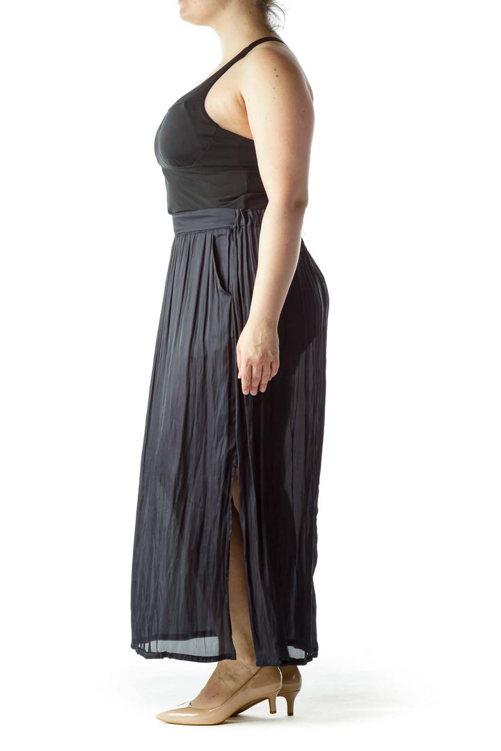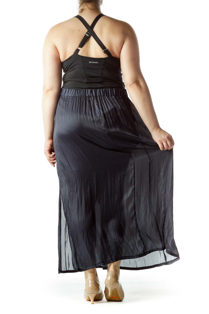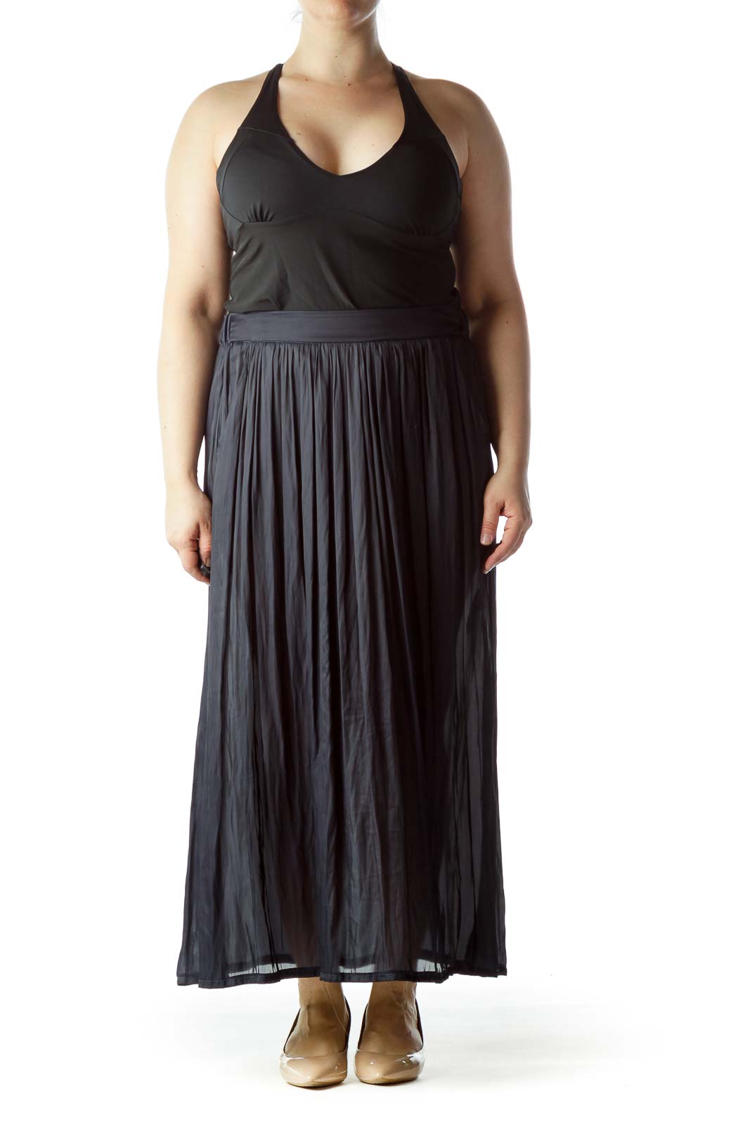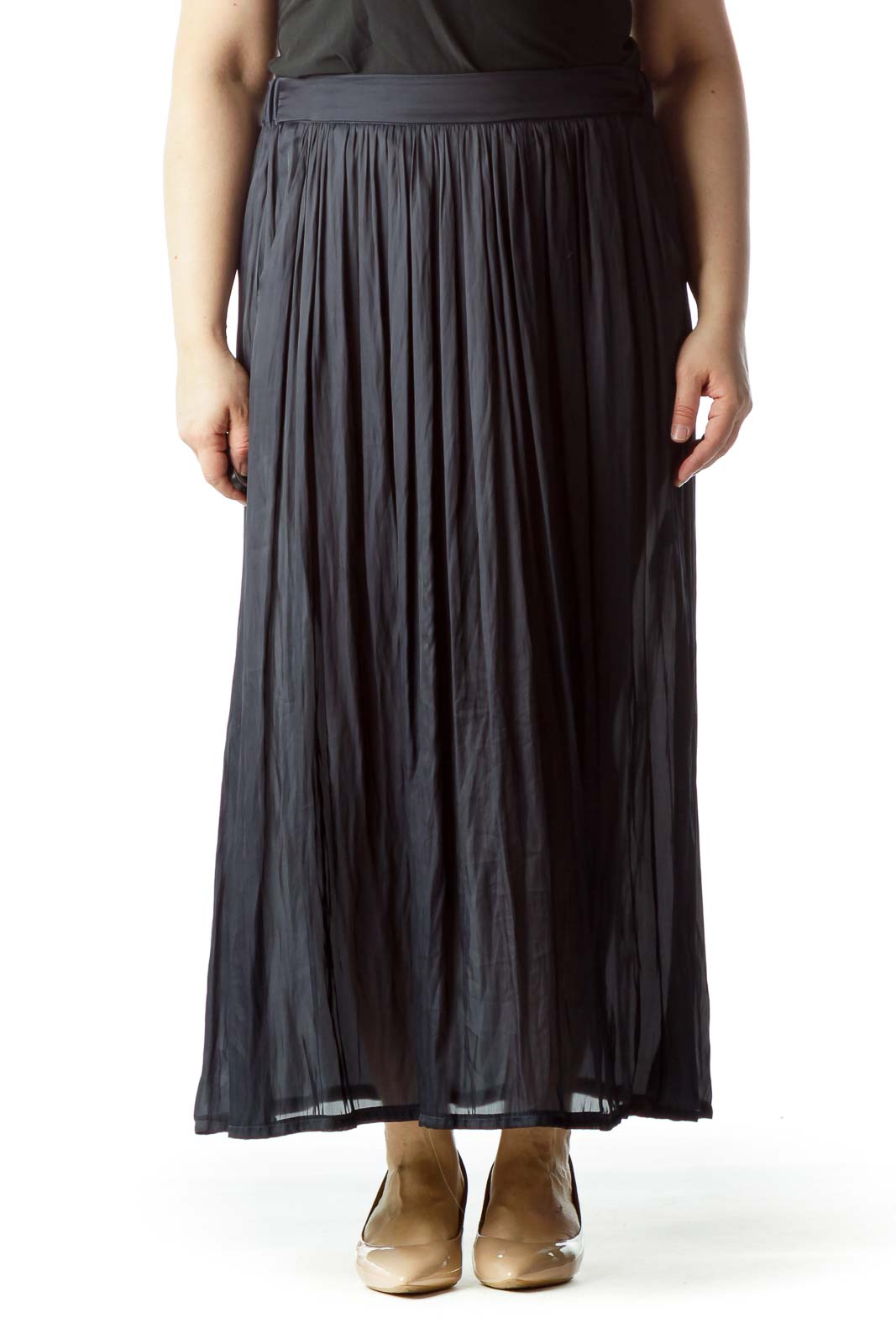 Elevate your wardrobe with this stunning black pleated maxi skirt from Lauren Vidal. This elegant piece features a flowing, floor-length silhouette that exudes grace and sophistication. The lightweight fabric cascades beautifully, creating a mesmerizing effect with every step. A wide waistband sits comfortably at the natural waist, providing a flattering fit for various body types. The skirt's excellent condition ensures you'll look polished and put-together for any occasion. Perfect for both casual outings and dressier events, this versatile skirt can be easily styled up or down. Pair it with a simple top and sandals for a chic daytime look, or dress it up with heels and statement jewelry for an elegant evening ensemble.