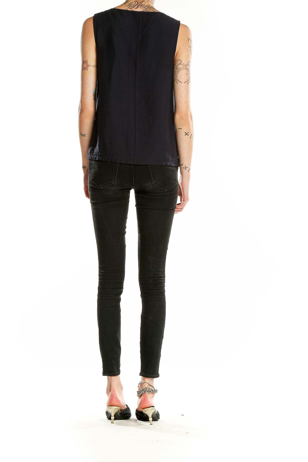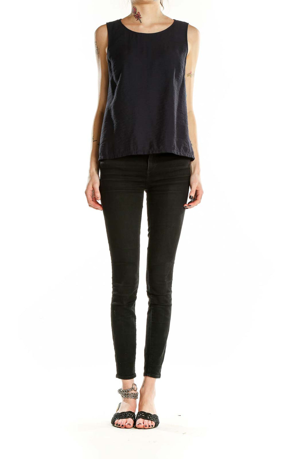 Elevate your wardrobe with this sleek and versatile black sleeveless blouse from Brass. Crafted from a smooth blend of nylon and rayon, this top offers both comfort and style for any occasion. The simple yet elegant design features a classic round neckline and a relaxed fit that drapes beautifully over the body.