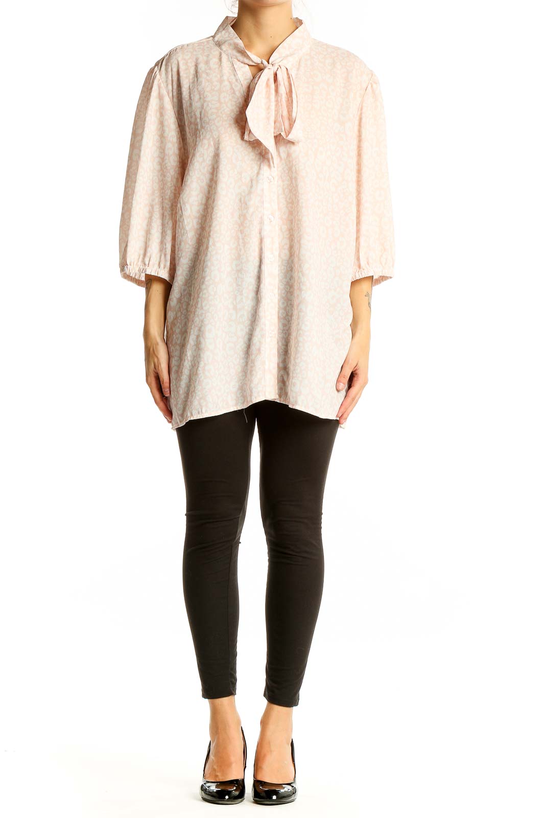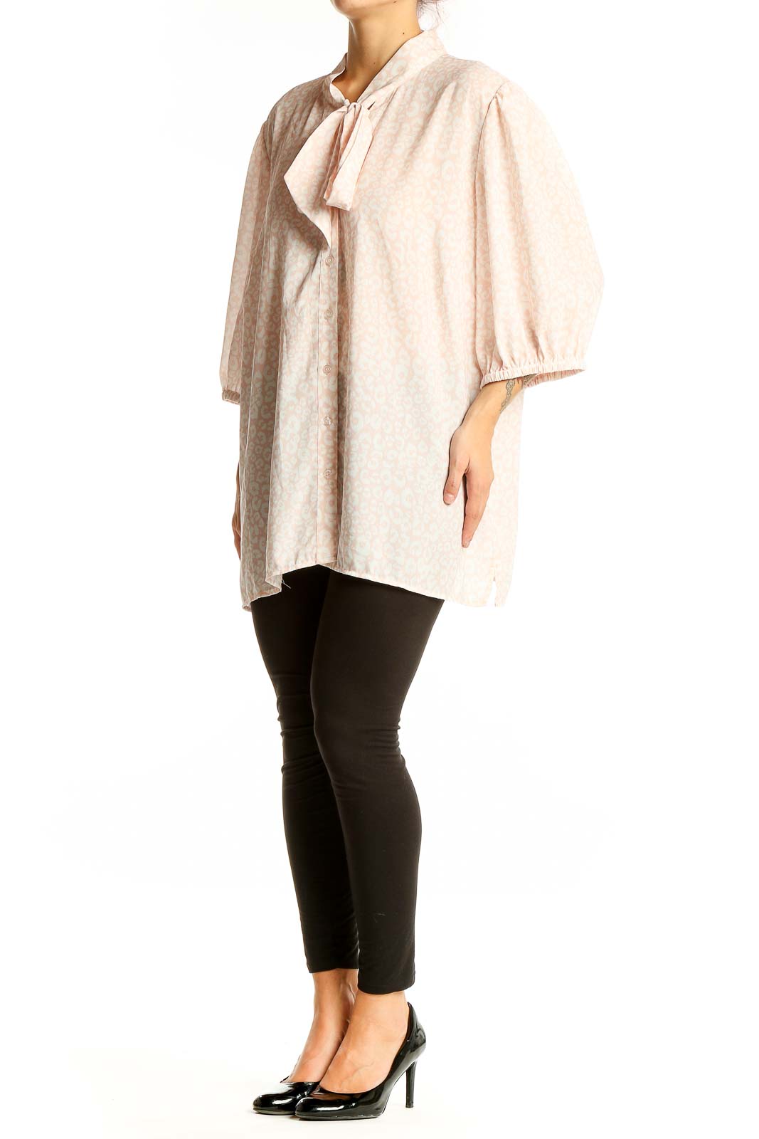 Elevate your wardrobe with this charming blush polka dot blouse from Eloquii. Crafted from soft and lightweight polyester, this top features a flattering oversized silhouette with voluminous 3/4 sleeves that add a touch of drama to your look. The elegant tie-neck detail allows for versatile styling options, whether you prefer a loose bow or a more relaxed open collar.