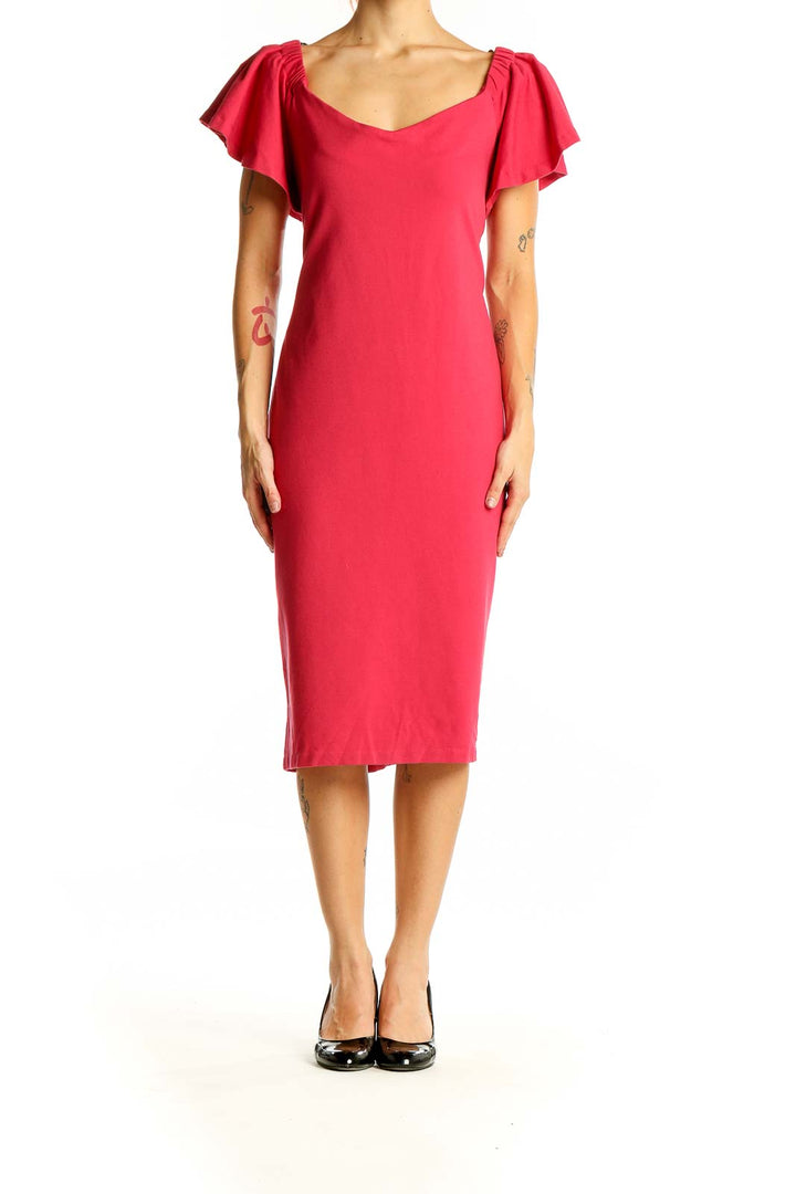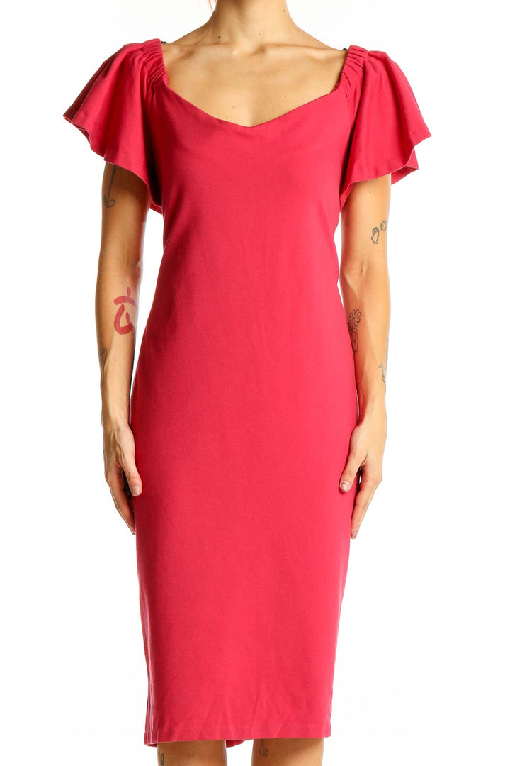 Make a statement in this stunning red bodycon midi dress from Eloquii. The vibrant cherry red hue demands attention, while the figure-hugging silhouette accentuates your curves beautifully. Flutter sleeves add a touch of romance and movement to this sleek design. Crafted from a comfortable blend of nylon, rayon, and spandex, this dress offers both style and stretch for all-day wear. The sweetheart neckline beautifully frames your décolletage, making it perfect for special occasions or a night out. With its midi length and form-fitting cut, this dress strikes the perfect balance between elegance and allure. In excellent condition, this Eloquii piece is a must-have addition to any fashion-forward wardrobe.