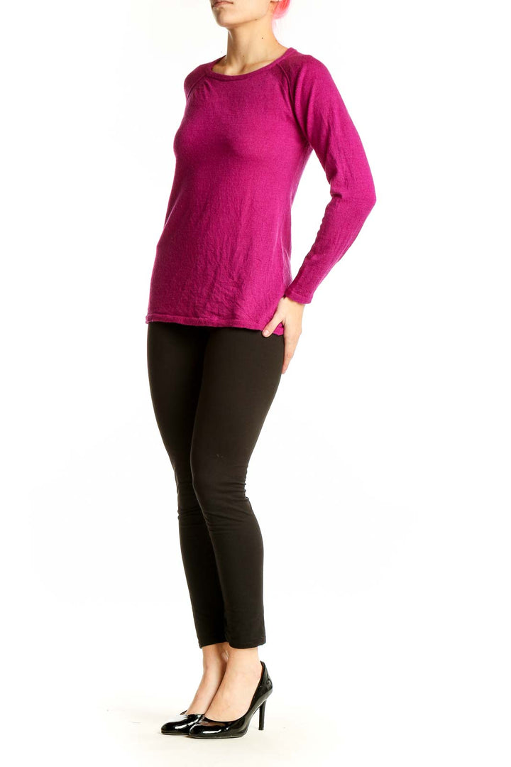 Elevate your wardrobe with this exquisite fuchsia Merino wool knit sweater from Eileen Fisher. Crafted from premium 'Laine De Merinos', this sweater offers unparalleled softness and warmth. The vibrant fuchsia hue adds a bold pop of color to any outfit, making it a standout piece for both casual and dressy occasions.