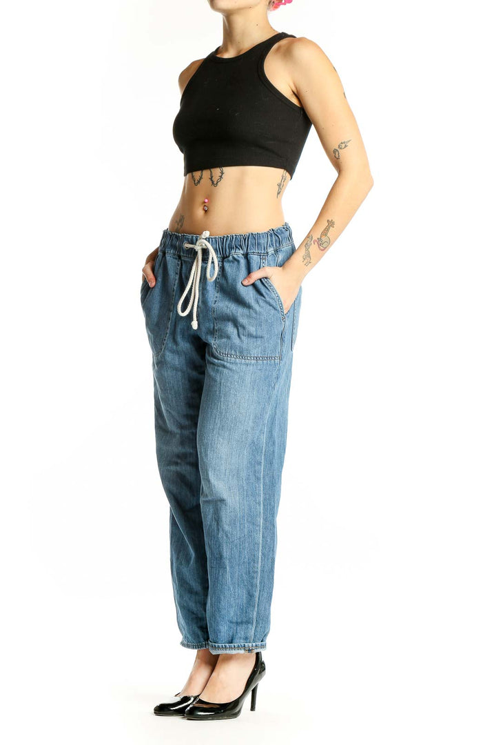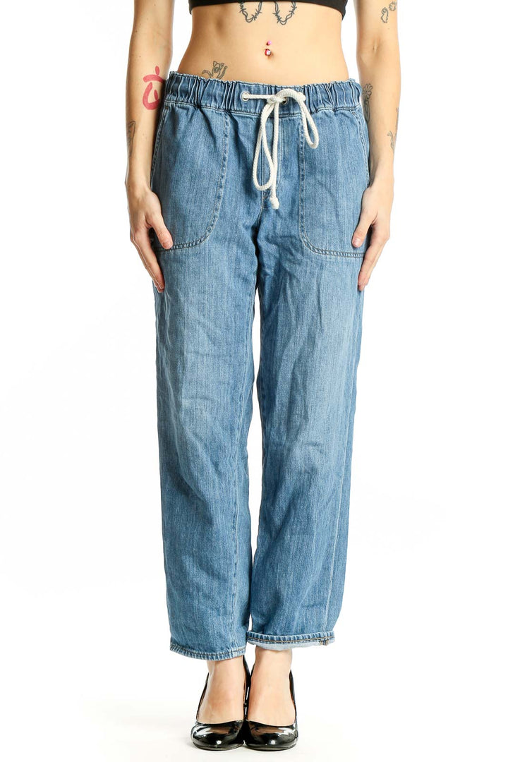 Step into casual comfort with these light blue denim pants from J.Crew. Featuring a relaxed fit and convenient drawstring waist, these pants offer the perfect blend of style and ease. The 100% cotton construction ensures breathability and durability, while the excellent condition speaks to their quality craftsmanship. Large front pockets add functionality to the design, making these pants ideal for everyday wear. The ankle-length cut and slightly tapered leg create a flattering silhouette that pairs well with both casual and semi-dressy tops. Whether you're running errands or meeting friends for a casual lunch, these versatile denim pants will keep you looking effortlessly chic.