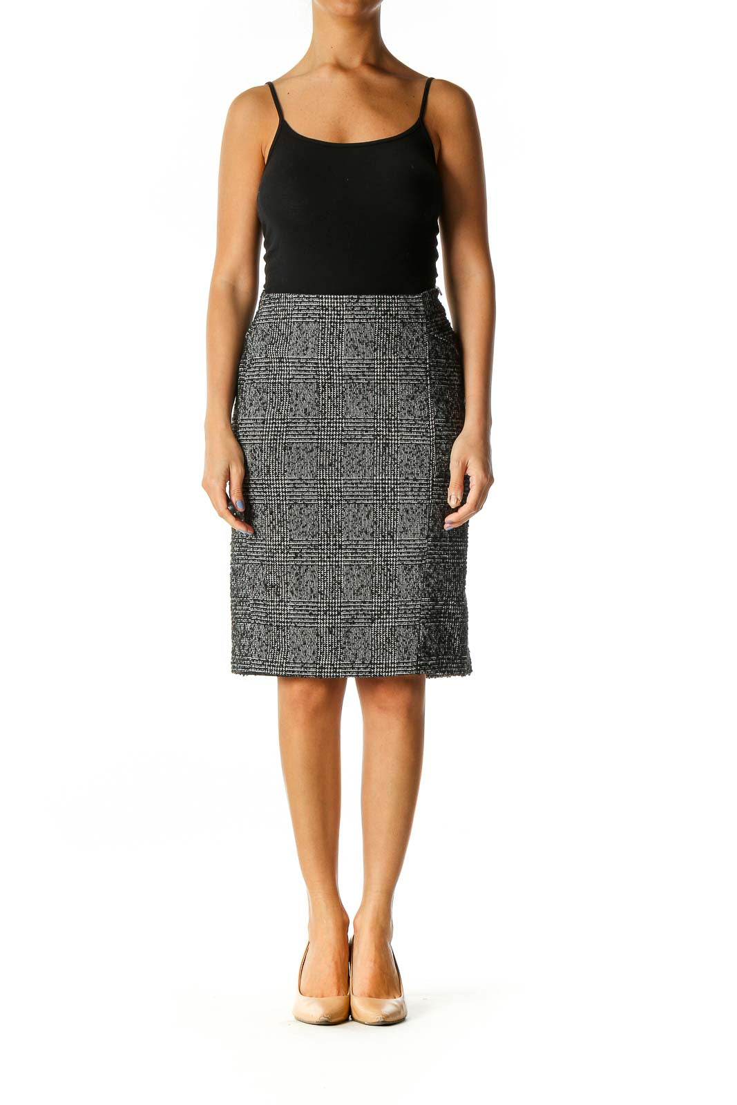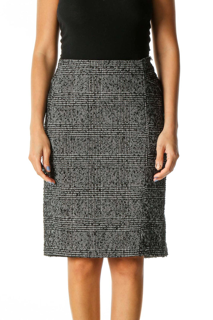 Black Textured Casual Straight Skirt