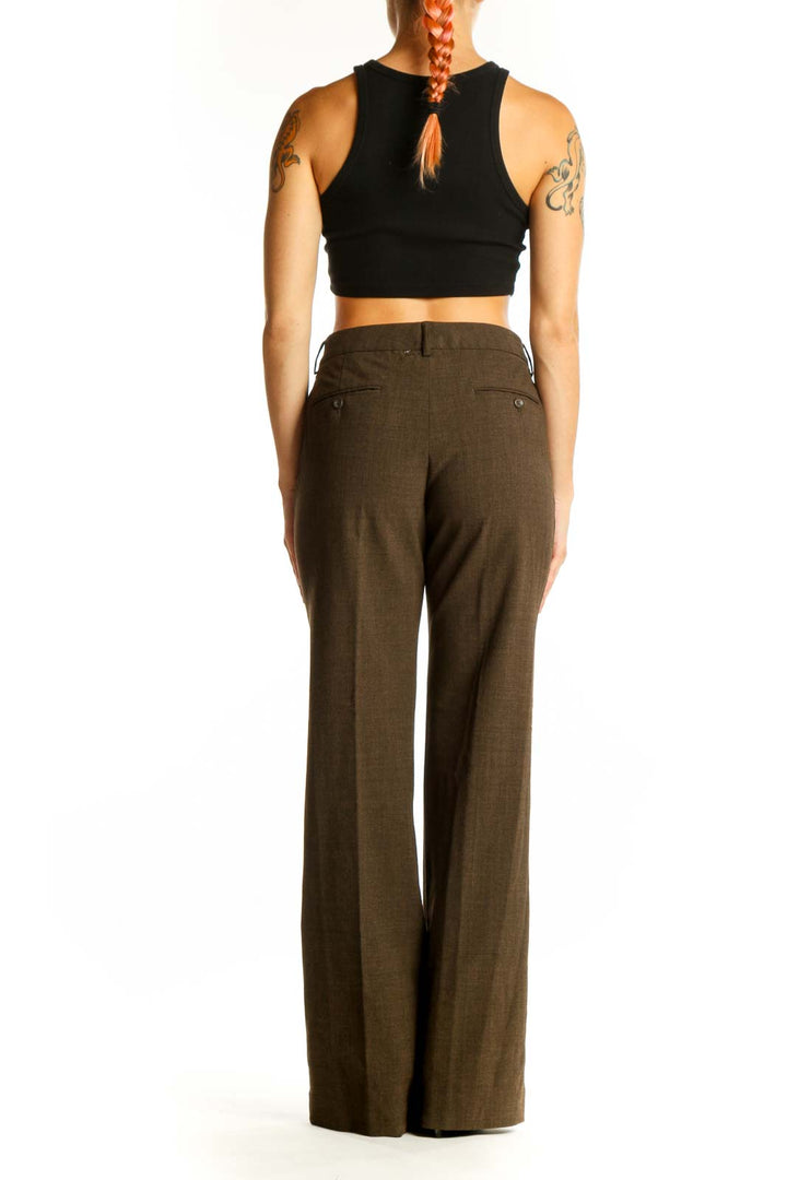 Step into sophistication with these elegant brown wide-leg dress pants from Express Design Studio. Crafted from a luxurious blend of polyester and rayon, these pants offer both comfort and style for the modern professional. The wide-leg silhouette creates a flattering, elongated look that's perfect for the office or evening events. With a mid-rise waist and a smooth, flat-front design, these pants sit comfortably at the hips and flow gracefully to the floor, complementing a variety of body types. The rich brown hue is versatile and easy to pair with both neutral and bold tops. In excellent condition, these pants feature quality construction with precise tailoring, ensuring a polished appearance that lasts throughout the day. The generous measurements of 38" at the hips, 41" in length, and a 34" waist provide ample room for movement without sacrificing style. Elevate your wardrobe with these timeless and sophisticated Express Design Studio pants.