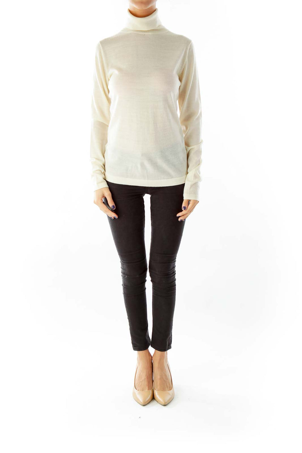 Cream Merino Wool Turtle Neck Knit