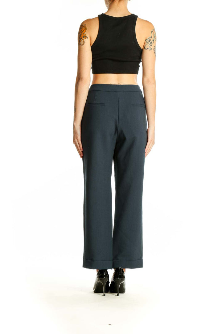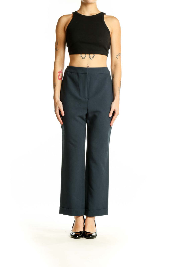 Step into sophistication with these navy wide-leg trousers from Finders Keepers. Crafted from a luxurious blend of elastane, polyester, and viscose, these pants offer both comfort and style. The high-waisted design elongates your silhouette, while the wide-leg cut provides a modern, fashion-forward look. Perfect for the office or a night out, these trousers feature a sleek flat front and convenient side pockets. The cuffed hem adds a polished finish to this versatile piece. New with tags, these pants are in pristine condition and ready to become a staple in your wardrobe. With measurements of 30" waist, 38" hips, and 36" length, they offer a flattering fit for a range of body types. Elevate your style with these chic and timeless Finders Keepers trousers.