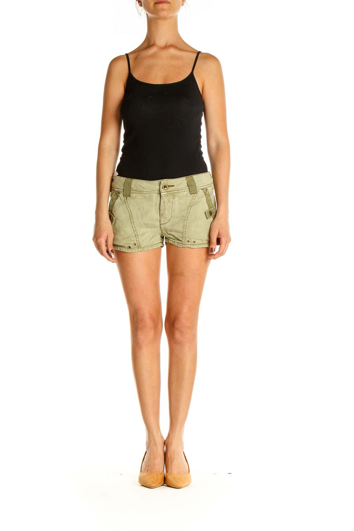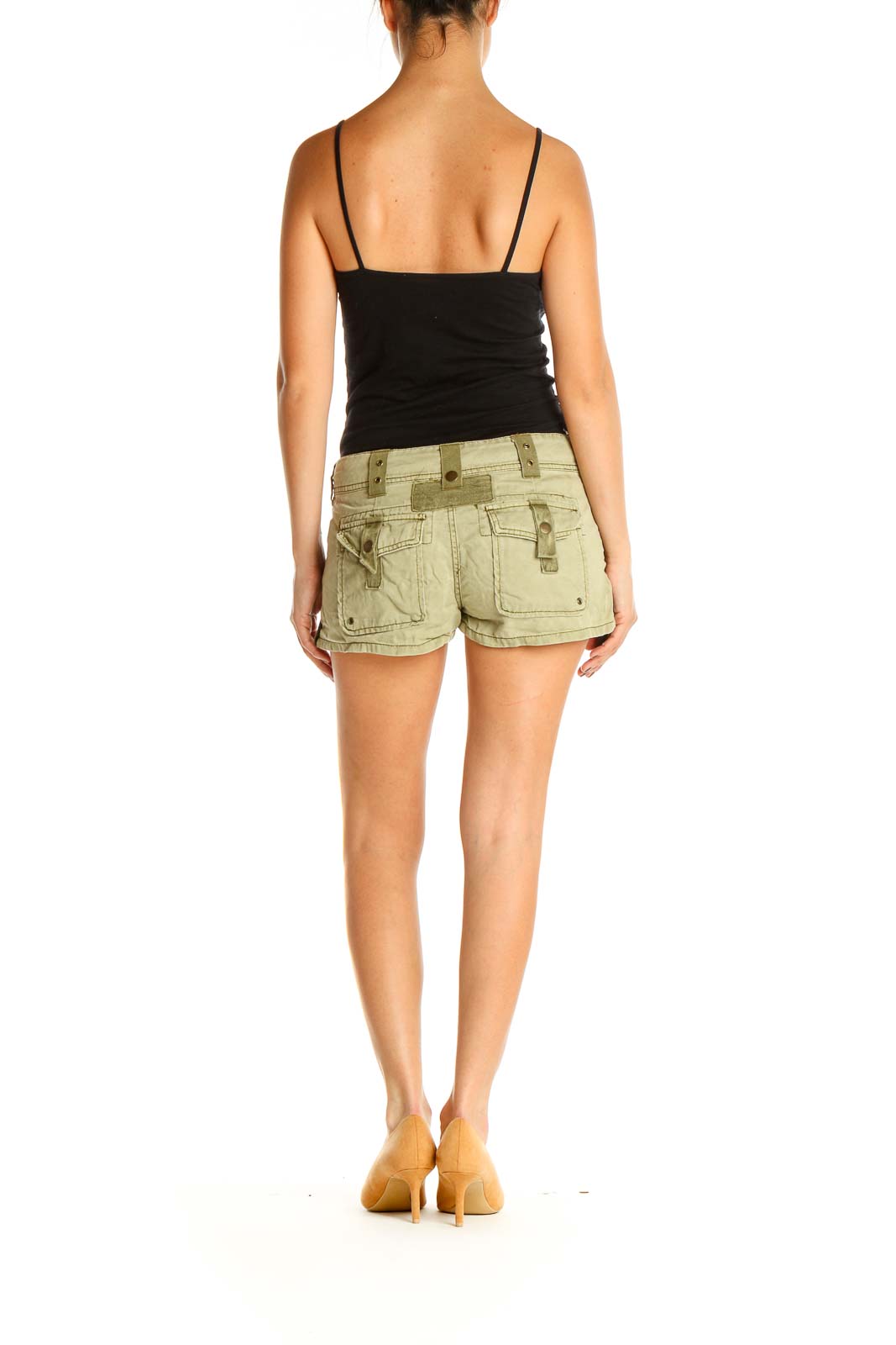 Step into casual chic with these olive green utility shorts from Free People. Perfect for warm-weather adventures, these shorts blend style and functionality effortlessly. The relaxed fit and mid-rise waist offer comfort for all-day wear, while the utility-inspired design adds a trendy edge to your look. Multiple pockets and subtle stud details enhance both practicality and style. Made with a soft, durable fabric, these shorts are ideal for various casual occasions. The good condition ensures you'll enjoy these versatile shorts for seasons to come. Pair them with a simple tank top for a laid-back summer outfit, or dress them up with a blouse for a more polished appearance. With their comfortable fit and stylish design, these Free People shorts are sure to become a staple in your warm-weather wardrobe.