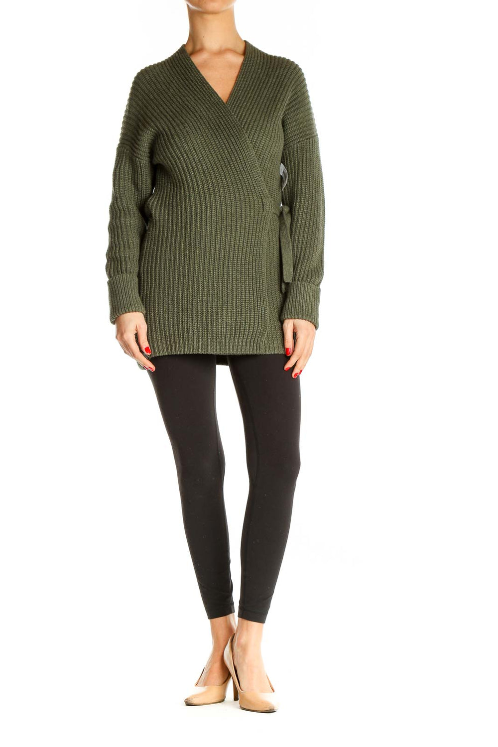 Green Textured All Day Wear Sweater