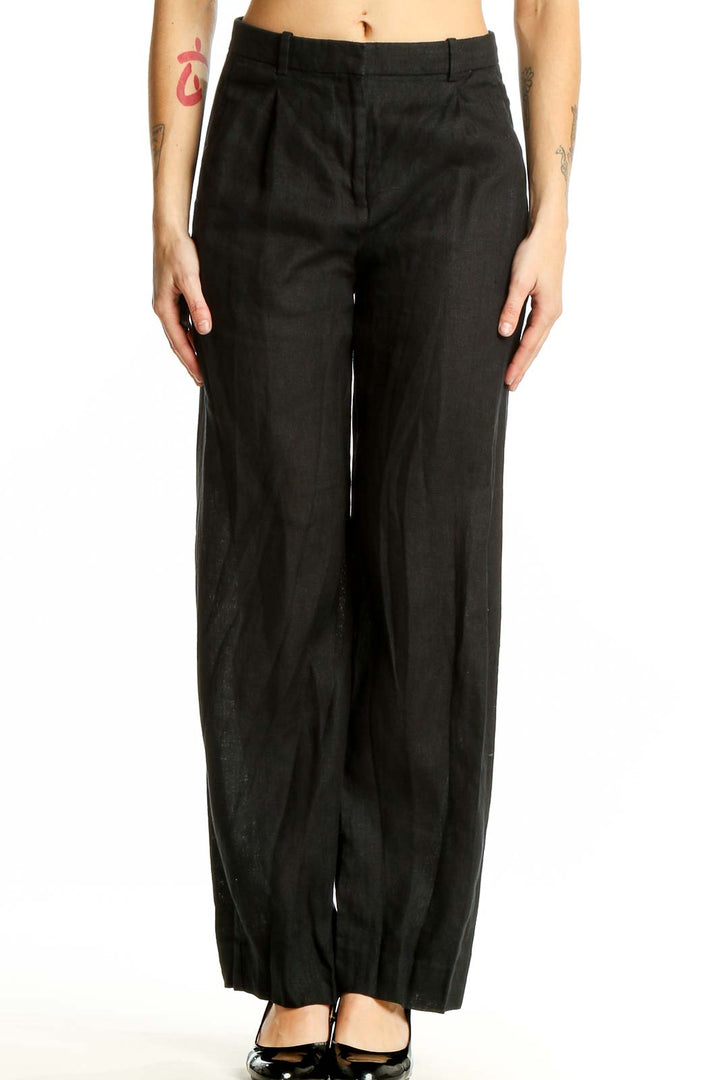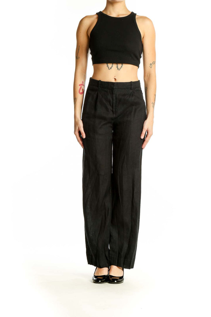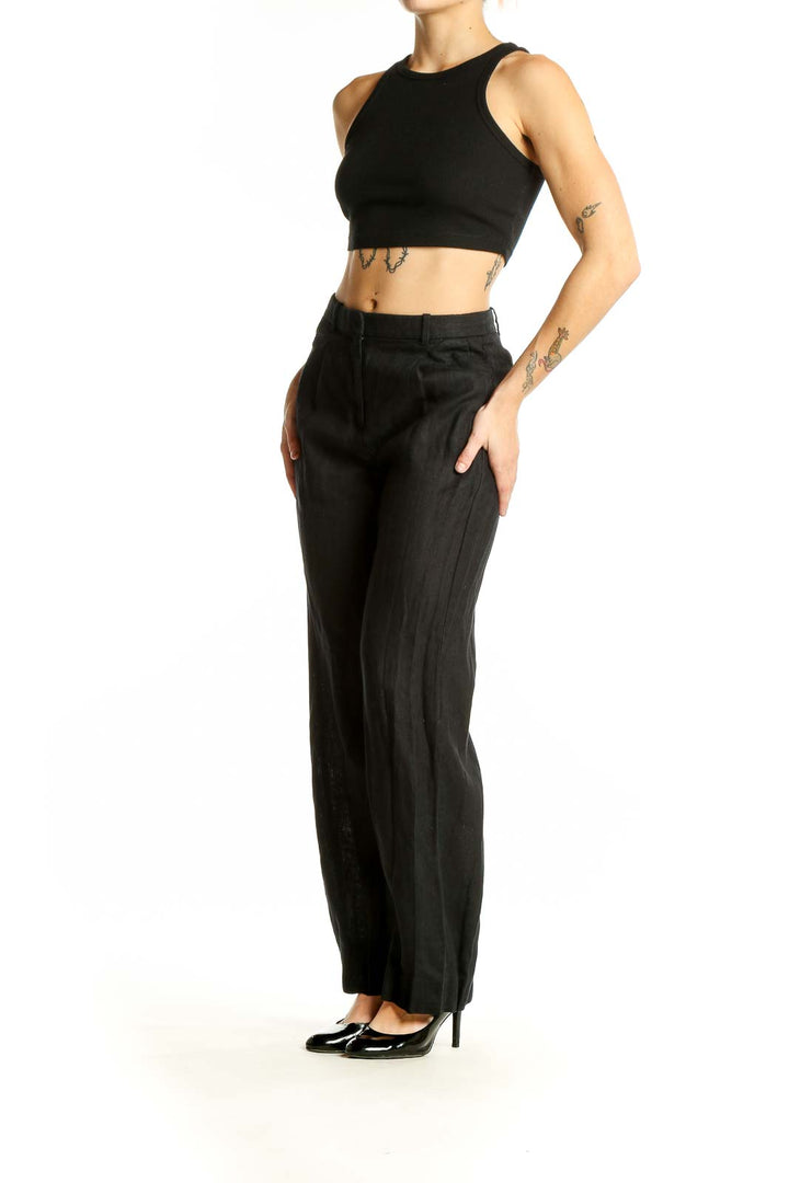 Pair these timeless black trousers with a crisp white blouse for a classic office look, or dress them up with a silky camisole and statement jewelry for an evening out. The lightweight linen fabric makes these pants an ideal choice for warm summer days or tropical vacations.