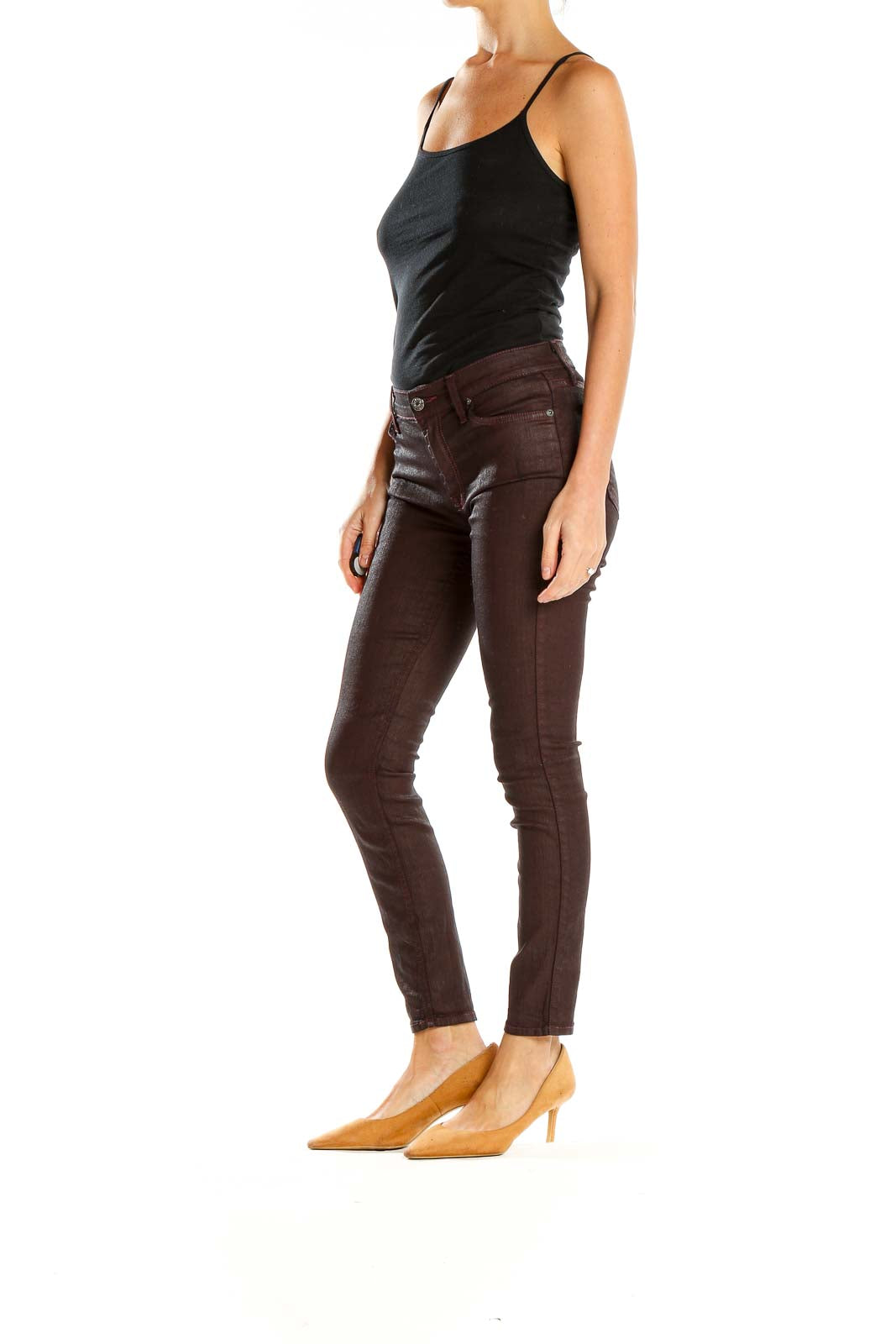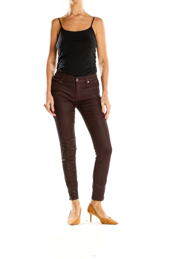 Elevate your denim collection with these sleek brown skinny jeans from 7 For All Mankind. Crafted from high-quality denim, these jeans offer a perfect blend of style and comfort. The rich brown hue adds a sophisticated touch to your casual wardrobe, making them versatile for various occasions.