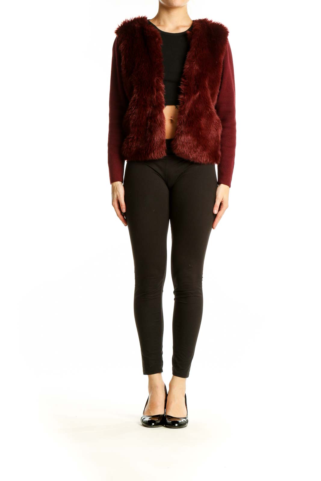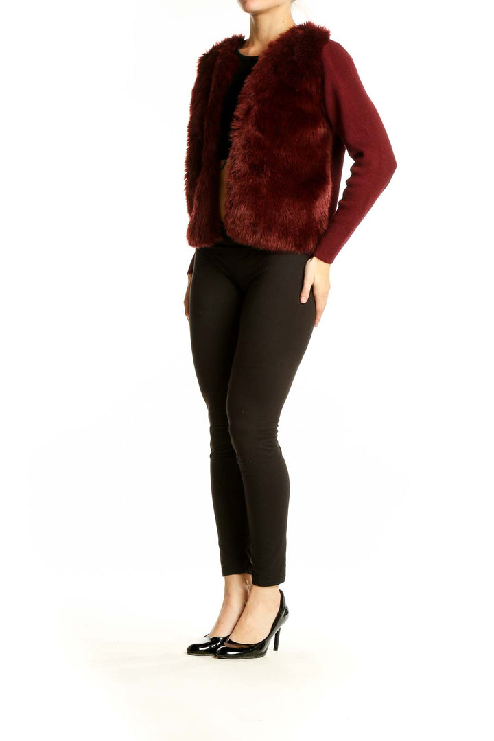 Elevate your winter wardrobe with this luxurious burgundy faux fur jacket from Banana Republic. This stunning piece combines the warmth of a plush fur body with the comfort of knit sleeves, creating a unique and stylish silhouette. The rich burgundy hue adds a touch of sophistication to any outfit, making it perfect for both casual outings and dressier occasions.