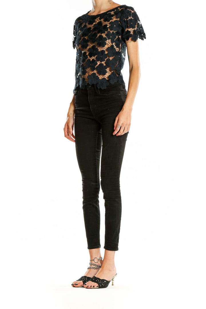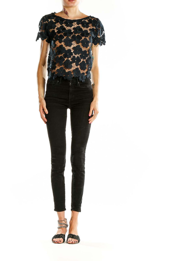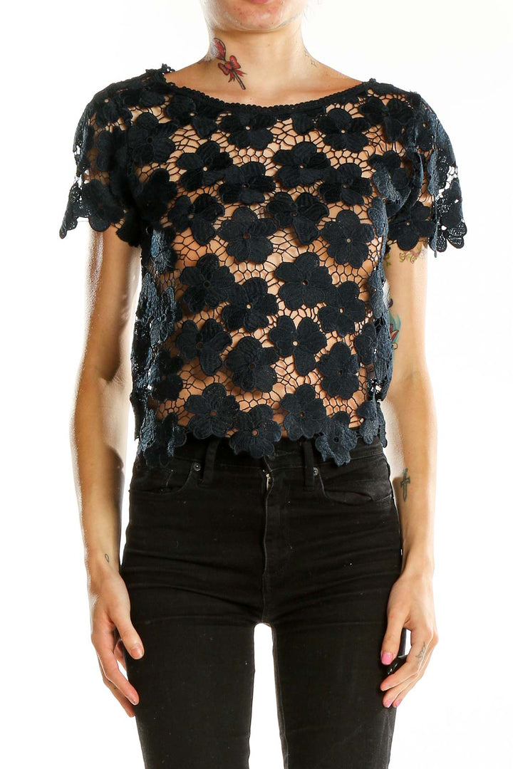 Elevate your style with this stunning black floral lace crop top from Atmosphere. This exquisite piece features an intricate all-over floral lace pattern that adds a touch of romance and sophistication to any outfit. The sheer design allows for a subtle peek of skin, making it perfect for layering or wearing on its own for a bold statement.